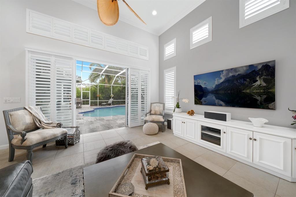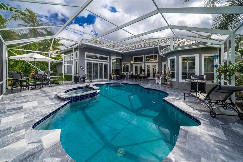 Stunning 4 bedroom plus den, 3 1/2 bath pool home. 3 car garage. Interior and exterior updates including new roof completed in 2019. Kitchen remodeled with Quartzite counters, extended cabinetry, Jenn Aire induction cook top, Wolfe double ovens, wine cooler, new lighting and window treatments. Water filtration system. Newer AC unit. Remodeled guest bath. Crown molding throughout, decorator niches. tray ceiling and columns. Elegant hardwood floors in master bedroom and den. Plantation shutters in family room and master bedroom. Central vacuum. Hurricane impact garage doors. Resurfaced pool with LED lighting. New marble on patio area and new screening for enclosure. Freshly landscaped yard. New super gutters and french drain. Exclude foyer chandelier and guest bath light fixture.