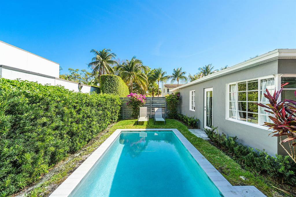 Newly renovated chic pied-a-tierre in Historic Coastal West Palm Beach. Enjoy the ease of one story living with this 2 bedroom, 2 bath home. Kitchen and baths have been fully renovated with clean lines and designer finishes. Wrapped in windows, this home is drenched with natural light. The tropical, lush landscape surrounds the heated pool, creating a tropical oasis.