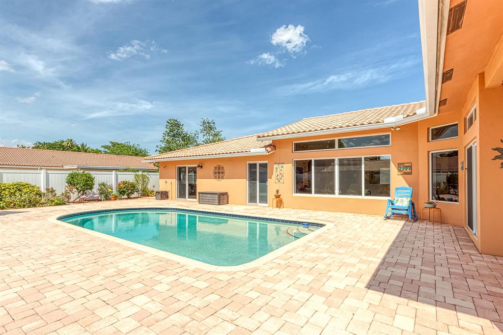 Rare 5 Bedroom, 3 1/2 Bath Home, NO HOA. This Gorgeous Home Has Been Completely Renovated and Features an Open Concept with Custom Cabinetry and Quartz Counter Tops. Kitchen has Built in Wine Cooler. Peninsula Island with Pendant Lighting & Brushed Nickel Appliances. Crown Molding, Recessed Lighting. Hurricane Windows and Doors Throughout. This Home Boasts a Private Vinyl Fenced in Yard with Beautiful Landscaping and a Large Pristine Pool, with an Outdoor Shower. Sliding Doors in the Living Areas Open onto the Pool and Garden, Fostering an Indoor/Outdoor Lifestyle. Boca Madera is a Quaint Neighborhood in the Heart of Boca Raton, Just Minutes from A-Rated Public & Private Schools ,I-95, and the Turnpike. THIS HOME IS PRICED TO SELL AND WON'T LAST LONG-SET UP A SHOWING TODAY!