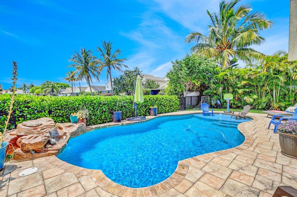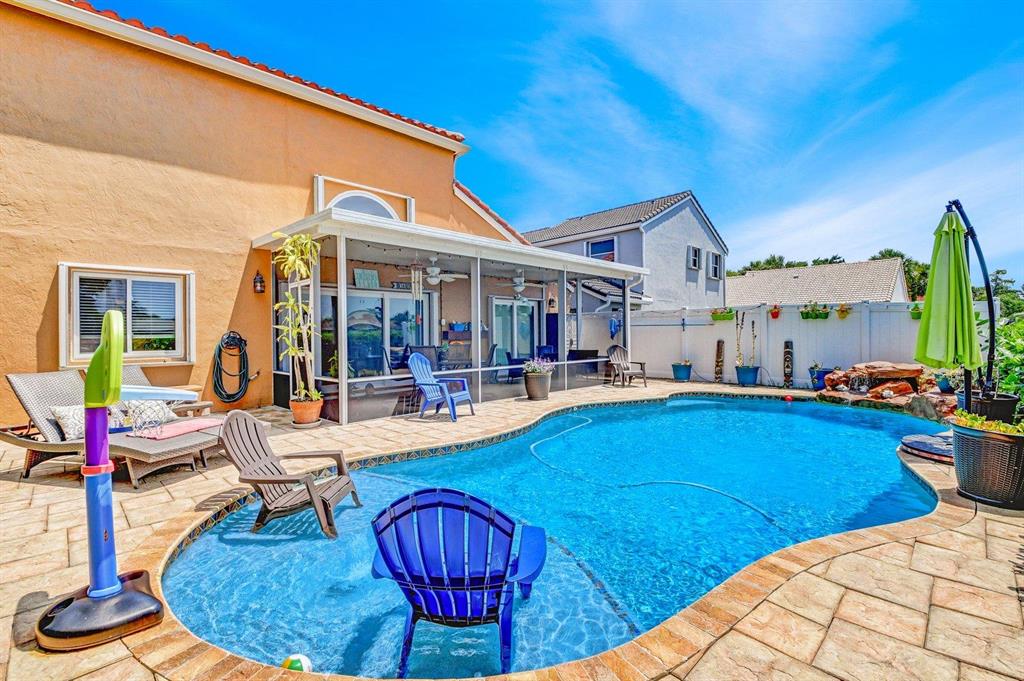 Spectacular Pool & Waterfront Renovated Home w/4 bedrooms, 2.5 baths, 2 Car Garage & pavered driveway. Dramatic entrance w/soaring 2 story volume ceilings & picturesque impact windows. Enjoy the sense of openness, volume, & space. Living areas & master bedroom are downstairs & feature 20 inch tile on a diagonal tile throughout. All 3 guest bedrooms are upstairs w/high end laminate wood flooring. All 3 bathrooms are luxurious. Gourmet chef's kitchen with white shaker cabinets some w/frosted glass inserts, New Samsung Tuscan SS appliances from 2020, quartz countertops w/tile backsplash, LED Recessed lighting & a sunny eat-in area. New S Tile Roof from 2018. Impact rated windows & doors/completed in 2019 w/ manufacturer warranty Plus Accordion shutters. High end ''low E'' rated impact glass.