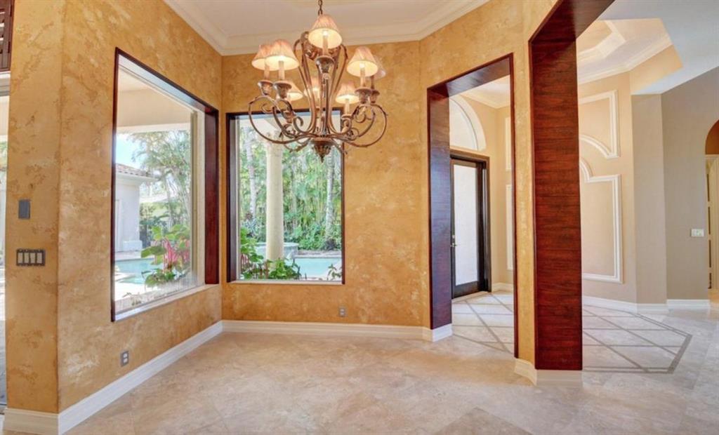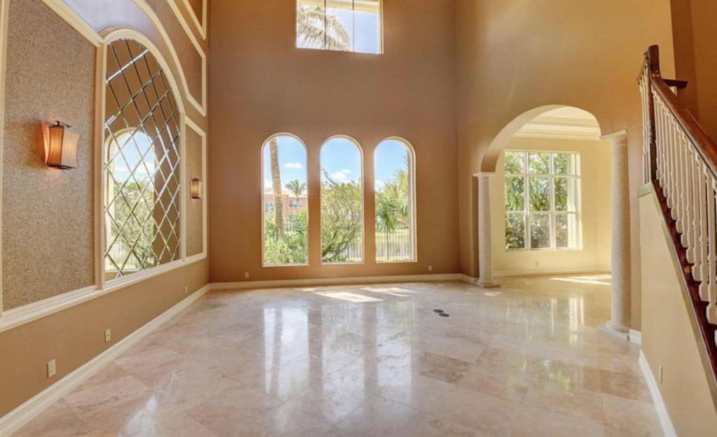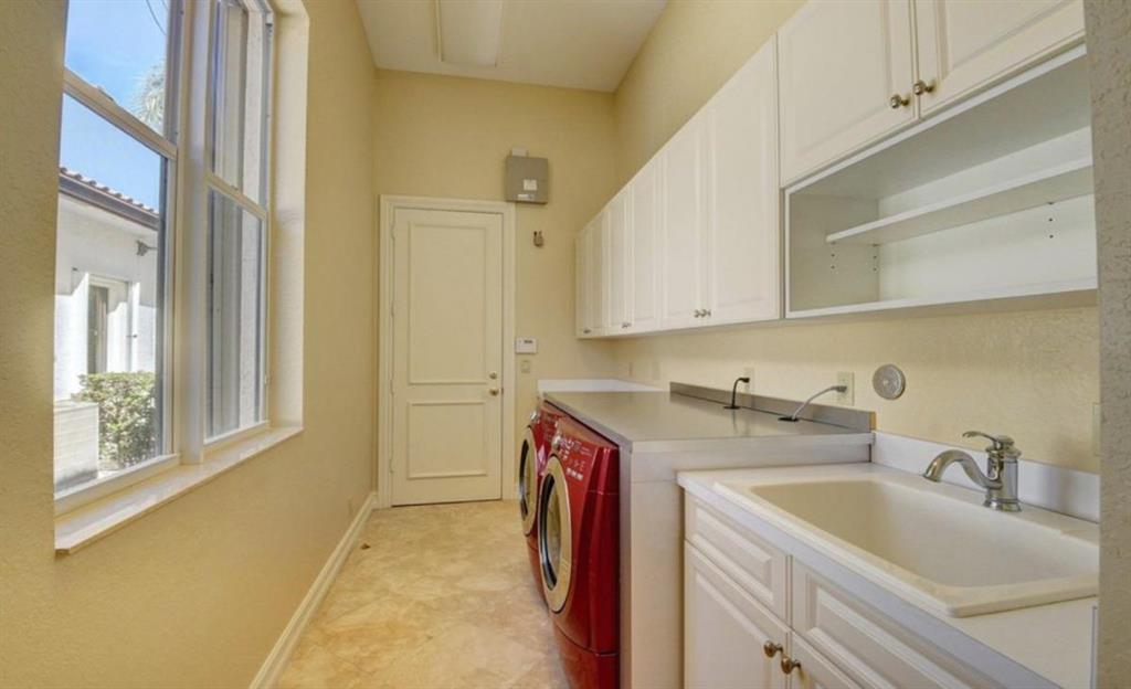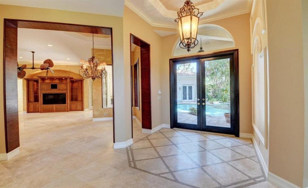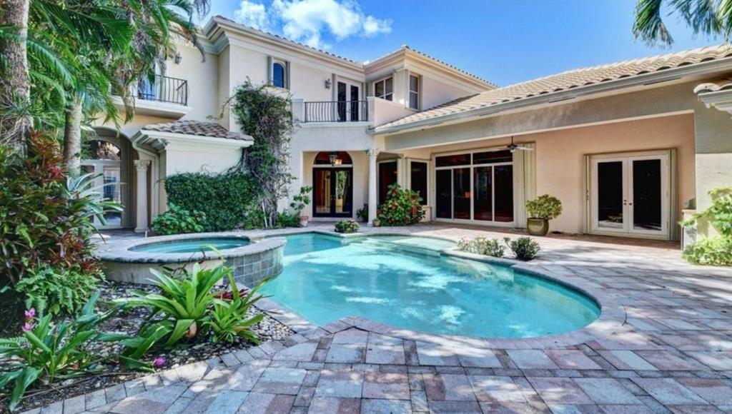 TREMENDOUS DEAL AND PRICED TO SELL! This home is move-in ready! An entertainer's delight, this elegant and architectural custom courtyard lakefront estate home is sure to impress! This home flows beautifully with 5 bedrooms, all ensuite, with the master down. Including a spacious guest house plus an office and large loft. A rich wood gourmet kitchen, Saturnia marble and wood floors, custom mill-work, built-ins, luxurious master bath and large outfitted master closets make this home special and desirable. The courtyard surrounds a private tropical resort style heated pool. Additional features include 3 balconies, a generator, full hurricane protection with accordion shutters.