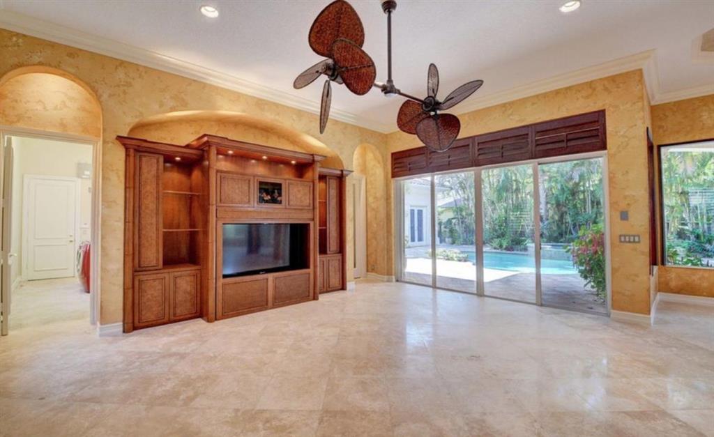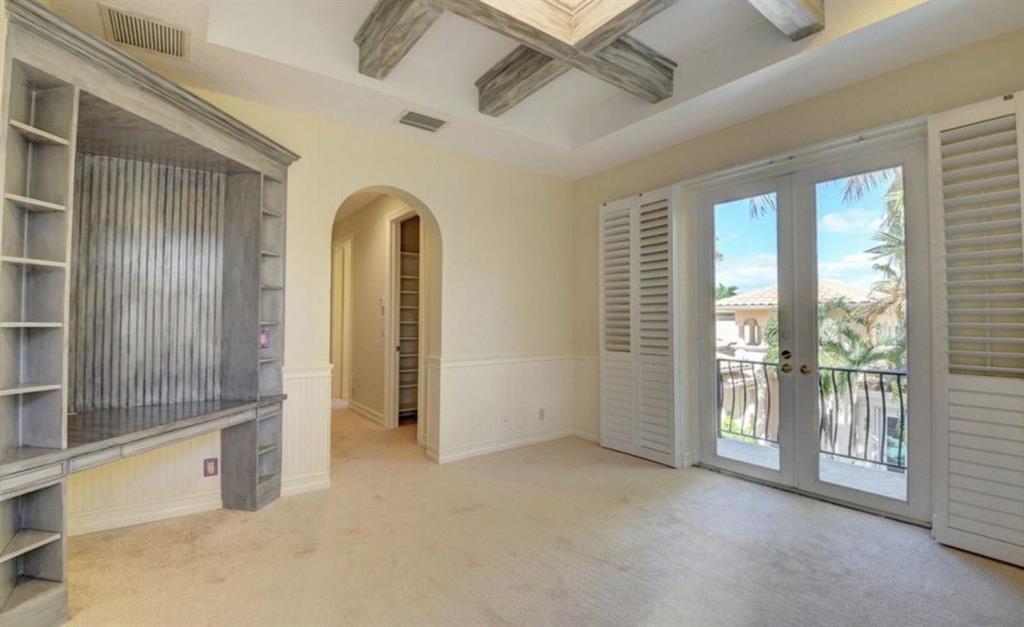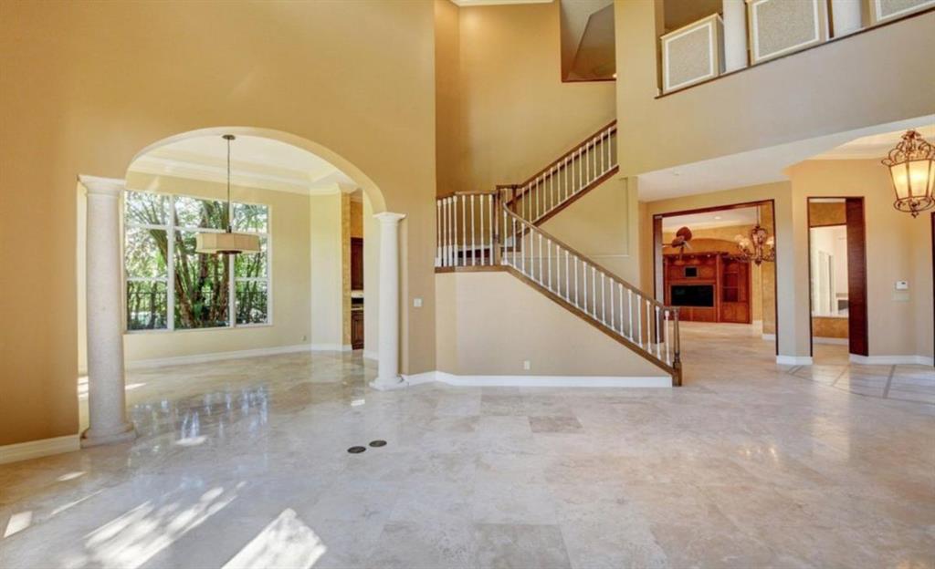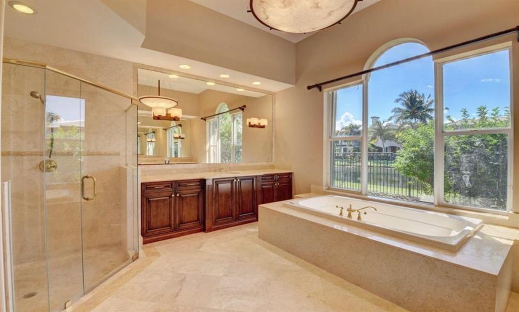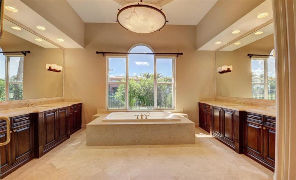 TREMENDOUS DEAL AND PRICED TO SELL! This home is move-in ready! An entertainer's delight, this elegant and architectural custom courtyard lakefront estate home is sure to impress! This home flows beautifully with 5 bedrooms, all ensuite, with the master down. Including a spacious guest house plus an office and large loft. A rich wood gourmet kitchen, Saturnia marble and wood floors, custom mill-work, built-ins, luxurious master bath and large outfitted master closets make this home special and desirable. The courtyard surrounds a private tropical resort style heated pool. Additional features include 3 balconies, a generator, full hurricane protection with accordion shutters.