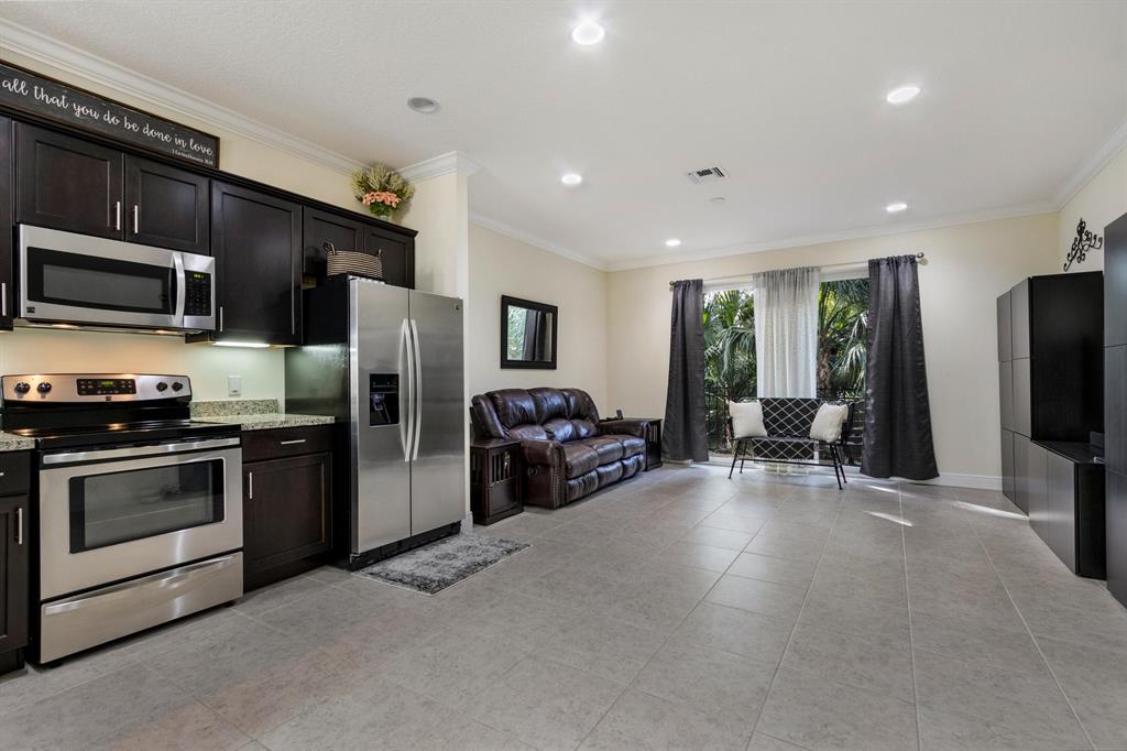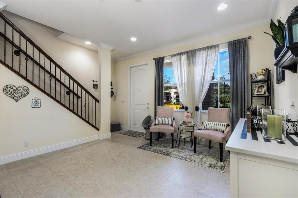 Must see this beautiful townhouse in West Palm Beach. 3/2.5 bedroom/bath with Full Impact windows. Located directly across from amazing clubhouse. Home features beautiful granite counter tops, stainless steel appliances, custom wood floors upstairs, 9' foot ceilings, crown molding throughout, and impeccably maintained.