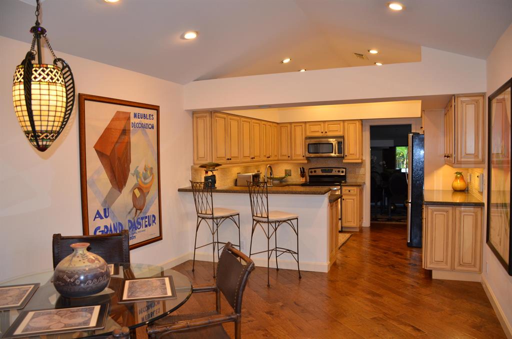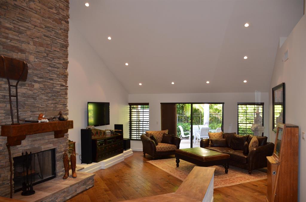 A wonderful 3 bedroom 2 bath home in the heart of Boca Raton. Features expansive ceilings with recessed lighting, stone fireplace, hardwood floors in main living areas and smooth ceilings throughout. Fully remodeled master and guest bathroom using high-end materials, Hunter Douglas window treatments, built-in office in 2nd bedroom, epoxy coated garage floor with plenty of storage, hurricane shutters, impact glass front door, and a newly installed high efficiency a/c system. The eat-in kitchen has stainless steel appliances with quartz countertops. The home is extensively landscaped and has a custom-built waterfall to sit by and relax. Excellent schools and quick access to I95, Turnpike, Town Center Mall and everything Boca Raton has to offer. Agt. Owned.