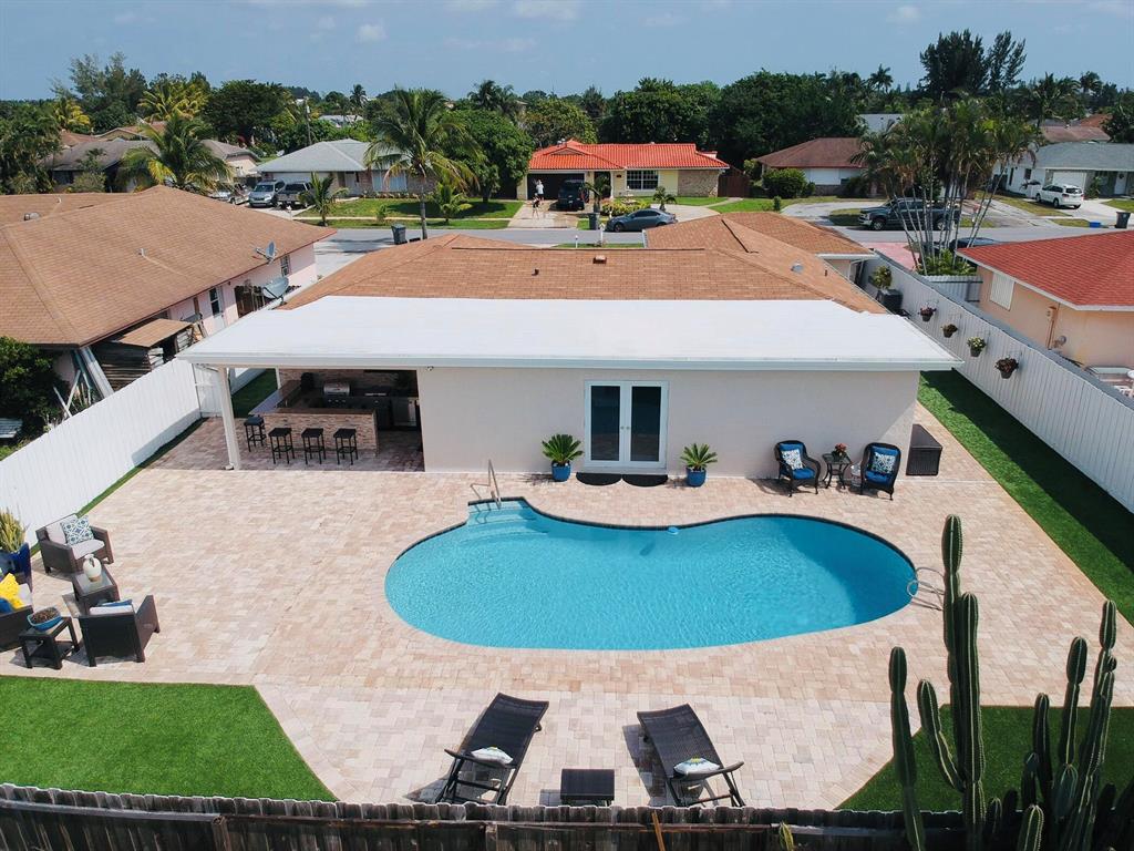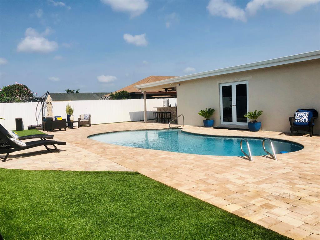 Welcome to you DREAM HOUSE! Fully upgraded, state of the art single family residence in the heart of the desired neighborhood of Flamango Lakes. The property features porcelain tile floors, white quartz countertops, wood cabinetry, stainless steel appliances, glass kitchen backsplash, camera security system, fully fenced back yard, pool, artificial grass, outdoor kitchen, impact windows, and much more. This area of West Palm Beach is prime location, minutes from I-95, Palm Beach outlet mall, restaurants, the beach, downtown, and more. Come see this house today, it won't last!