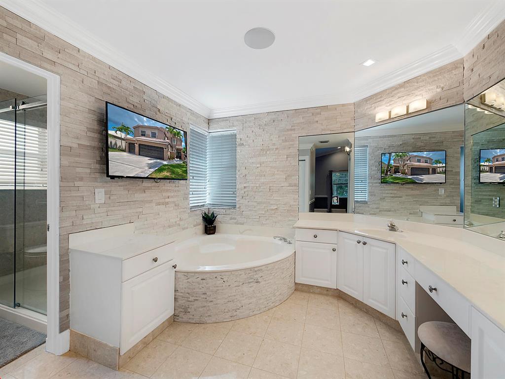 Stunning 4 Bedroom 2.5 Bath Oasis in Classics! Absolutely GORGEOUS & HUGE backyard patio area with both a large screened patio and oversized pool with spa atop an expansive open travertine patio area. An entertainer's dream inside and out with a large open-concept kitchen, large dining area and room for a bar. Retreat to your spa-like Master Bath and park all your toys in the large 3-car garage. Home comes with a complete set of accordion hurricane shutters, front lawn maintenance included in HOA, association repaints exterior of home (again in 2022) every few years, custom quartz and quartzite countertops in the kitchen, and much much more! MUST BE SEEN! You can not duplicate this home and it will not last!Home Front grass maintained by HOA