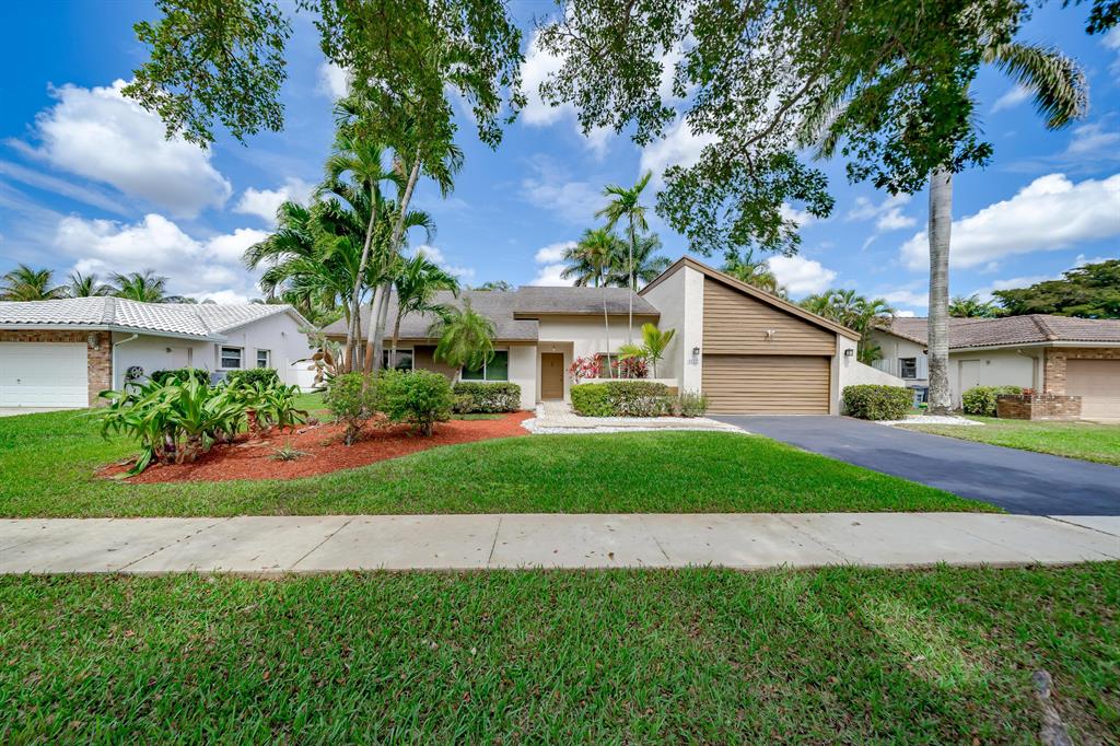 Warm, inviting LARGE 3-bedroom, 2 bath, pool home in Jacaranda Lakes is waiting for its new owners! Updated kitchen w/ 2 convection ovens, golden crystal granite countertops and vented range hood. Enjoy your induction cooktop island with lots of storage underneath. Newer wood floors in entry way and kitchen. FHIA Lifetime Guaranty Hurricane glass/windows. Beautiful and private backyard with newly resurfaced pool. Master bedroom has 2 closets and a large en-suite bathroom with 2 sinks. Working fireplace in living room. ADT alarm system with RING. Office built-ins in 2nd bedroom; ideal for working from home! Highly desirable community in Plantation! *LISTING AGENT CAN FACETIME FROM PROPERTY WITH NOTICE*