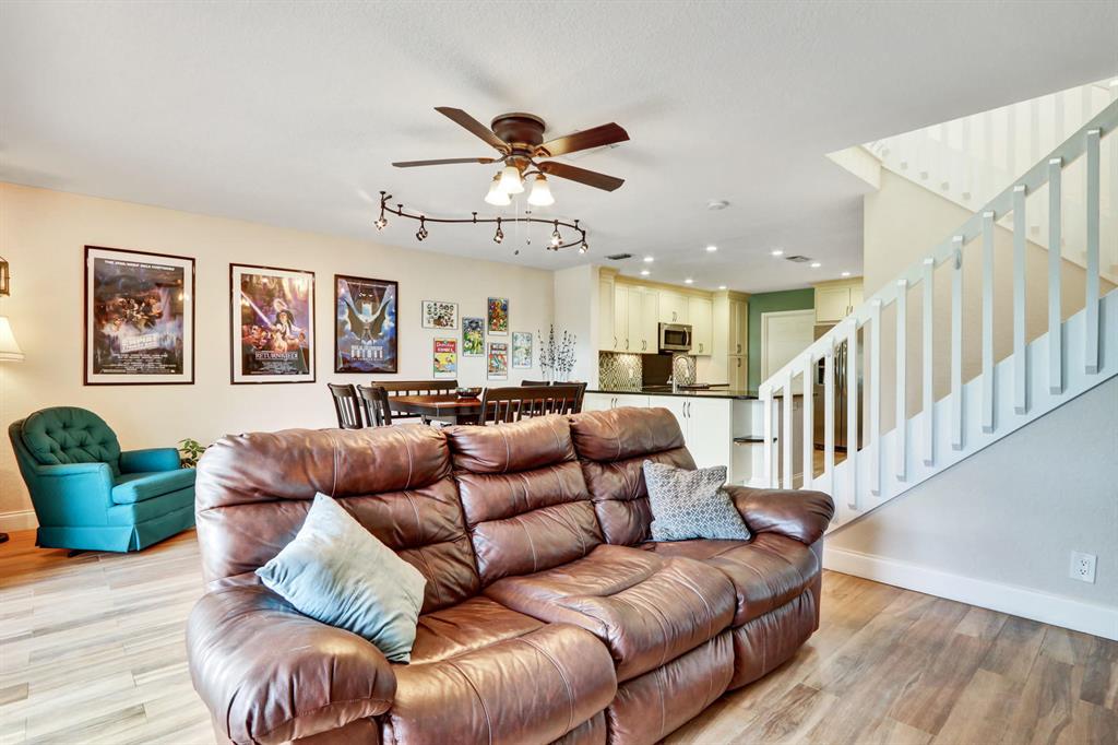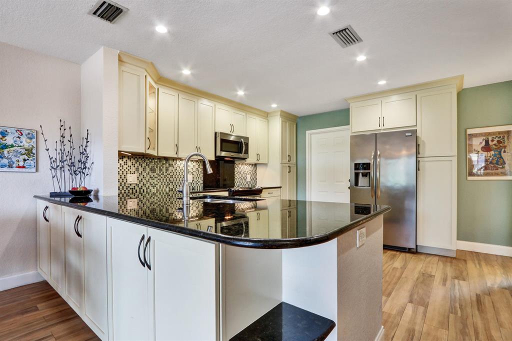 Welcome to this beautiful 3 bedroom, 2.5 bathroom, lakefront townhome in the wonderful community of Woodbridge Lakes. This updated 2-story home features a 1 car garage, open concept floor plan with split bedroom layout, and beautiful lake & pool views from your private balcony and screened-in patio. The spacious & open kitchen has been updated with gorgeous cabinetry, granite countertops, tiled backsplash, stainless steel appliances, large sink, lazy susan, and LED high-hat lighting. The master suite features a sizeable walk-in closet, a large private balcony, and an updated bathroom with a walk-in shower and his & hers sinks. Some additional features you'll love include stunning wood-look tile floors downstairs, completely remodeled bathrooms, partial impact windows,
