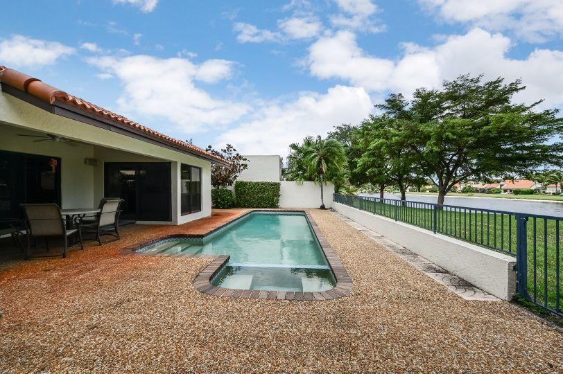 Gorgeous lakefront, pool home with brand new roof, on very private cul-de-sac lot! NEW A/C System just days old!! Come inside and be wowed by spacious living areas with soaring cathedral ceilings along with gorgeous flooring throughout. The inviting kitchen offers granite counters, tons of cabinetry and counter top space. All of the bedrooms are spacious as well and the master suite is complete with a luxurious master bath. Outside you can enjoy a beautiful, covered patio overlooking the relaxing pool. This home has it all and is conveniently located just minutes from fine shopping & dining, the Turnpike, I-95 and Palm Beach International Airport.