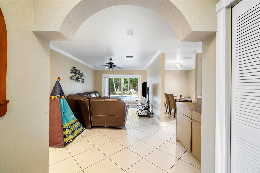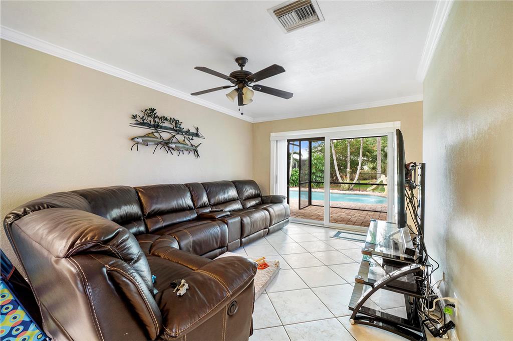 Amazing Single Family Ranch Pool Home with 2 Car Garage with Fenced yard ! Buyer's or Sellers look at the 3D Tour of the property ! Turn Key Home has Hurricane impact windows all around, Roof is Newer ! House will max out with Insrance Credits. Pool was redone less than 1 year ago just in time for summer :) Home Features 3 Bedrooms 2 Bathrooms Great kitchen with All S.S Appliances except Range, Eat up bar at kitchen island with all Granite Countertops. Huge Master Suite with Electric & Cable easy to hang T.V on Wall Master bath has Cabana Frosted French door to the pool updated bath with with overhead rain spout. Floors throught Living area is all Tile, Master & Bedrooms have wood Floors. Home Has Crown Molding Thought Home except for two bedrooms.