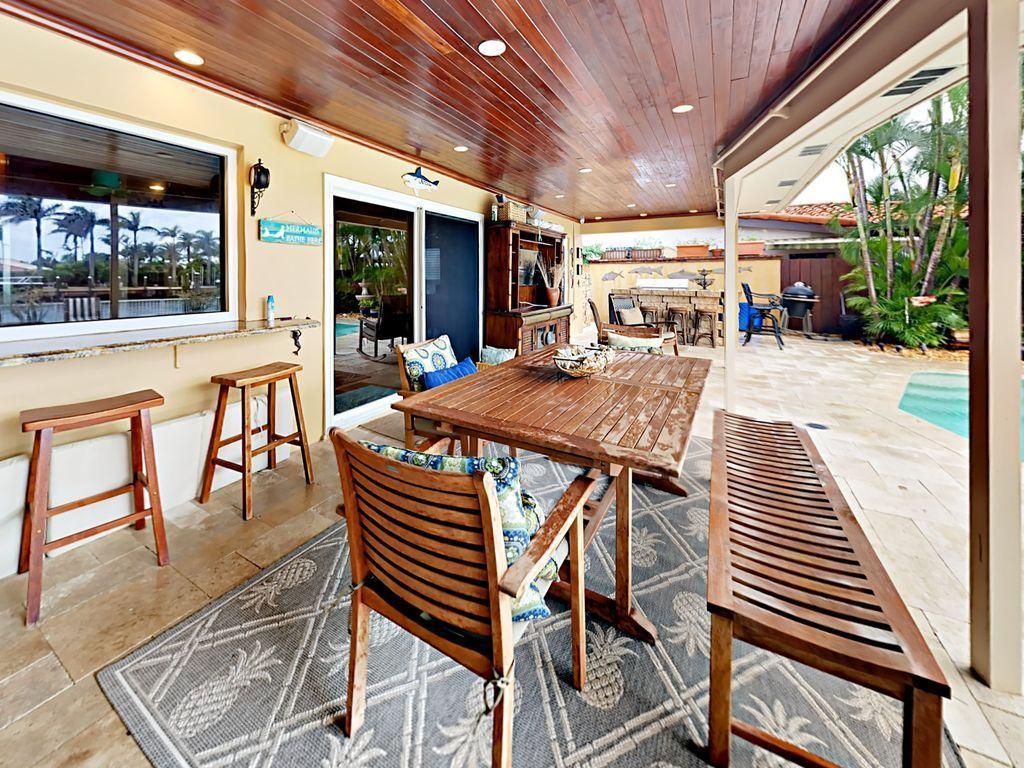 4 Bedrooms, 3 Baths, PROPERTY OVERVIEW Set directly on the Intracoastal Waterway, A new updated composite dock. New air conditioner, roof is metal, impact glass thru out entire house. House was renovated in 2014, Special golf grass in back of house. This elegant 4BR/3BA home is perfectly located to enjoy all that West Palm Beach has to offer! Close to a hub of activity, you'll be 15 minutes away from City Place and near an array of beautiful beaches. After a day of fun in the sun, head home to take a dip in the private heated pool with a spa, and sear the day's catch on the outdoor grill. When night falls, enjoy dinner on the dockside dining set and watch the yachts float by. LIVING AREAS The inviting living room serves as the entertainment hub of the home.