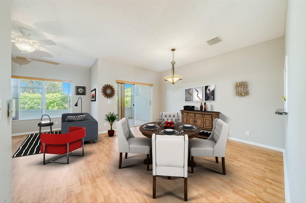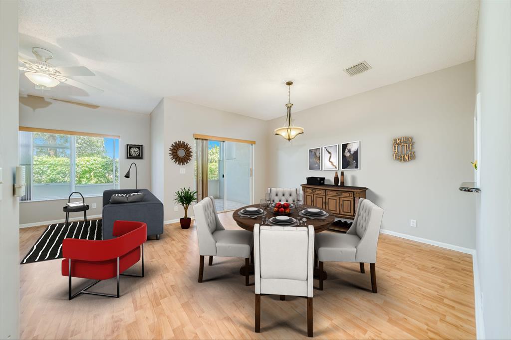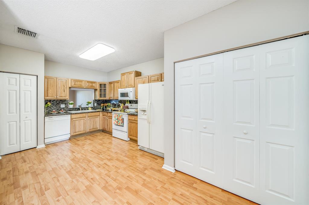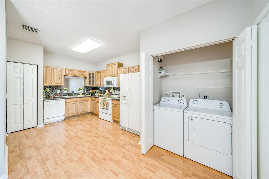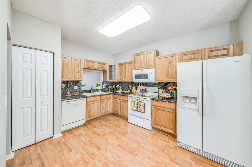 Updated 3-bedroom, 2.5 bath, 1 car garage townhouse with a screen in patio. Property is vacant, clean and move in ready!!!! This contemporary designed property features laminate wood flooring on the first floor, continuing that neutral look is a beige carpet flooring on the staircase & 2nd floor. The renovated eat in kitchen has granite countertops and backsplash, wood cabinetry, a pantry & plenty of space for a big table in the kitchen in addition to offering a breakfast bar & formal dining space. All 3 bathrooms have been updated. Double doors open to the oversized master suite with vaulted ceilings, a reading area, huge walk in closet & master bath is updated w/ extra-long vanity with dual sinks, granite counter tops, tile flooring,