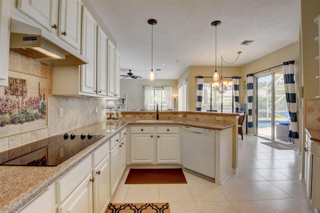 Striking, impeccable, beauty - This is the one you have waited for! The formal living room is spacious with 12' ceiling overlooking the pool. Formal dining room with tray ceiling and sunny arched front window. Inviting family room with sliders to the pool and open to picture perfect kitchen - white cabinets, with stainless refrigerator/wall oven/microwave, neutral tumbled marble backsplash and granite counters. Kitchen has breakfast bar seating as well as a sunny separate breakfast area overlooking the private screened pool and patio.Peaceful Master Suite is done in soft colors with French doors leading to the pool. Renovated dream master bath with two sinks in granite vanity, beautiful cabinets and seamless glass shower, separate tub. Click ''MORE'' for other details