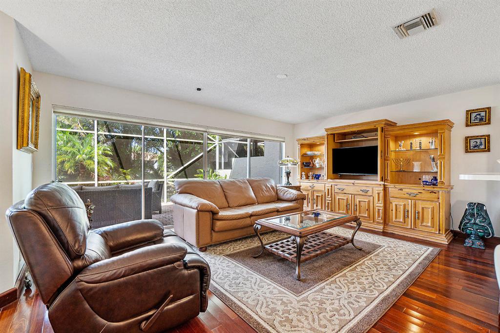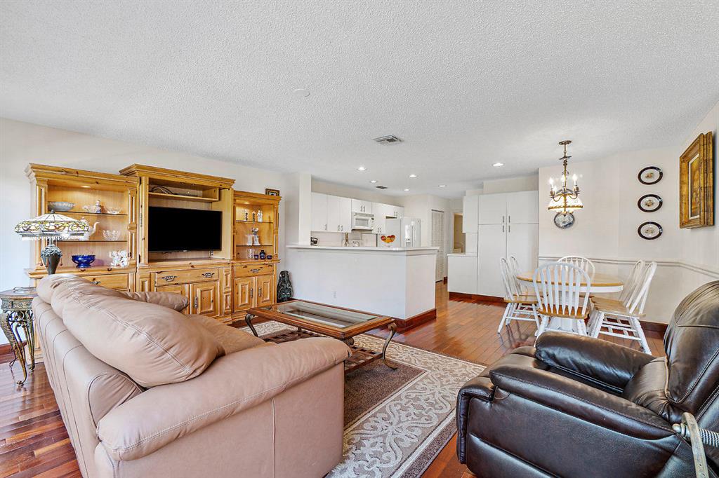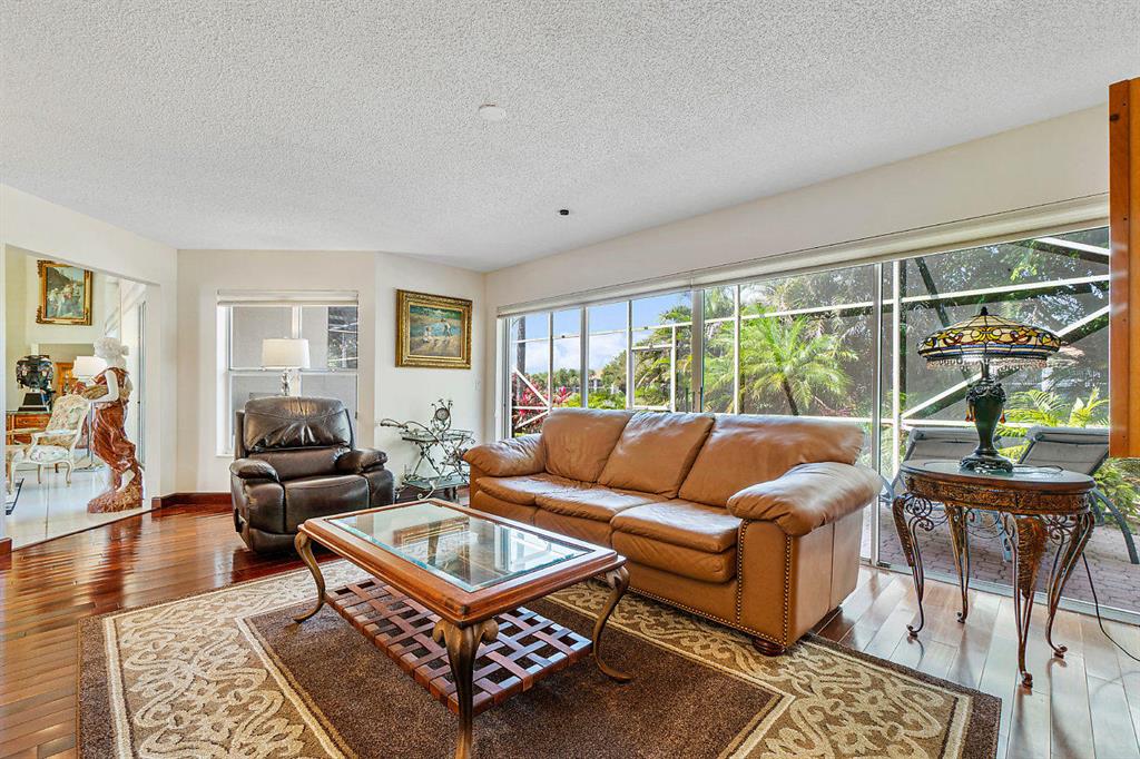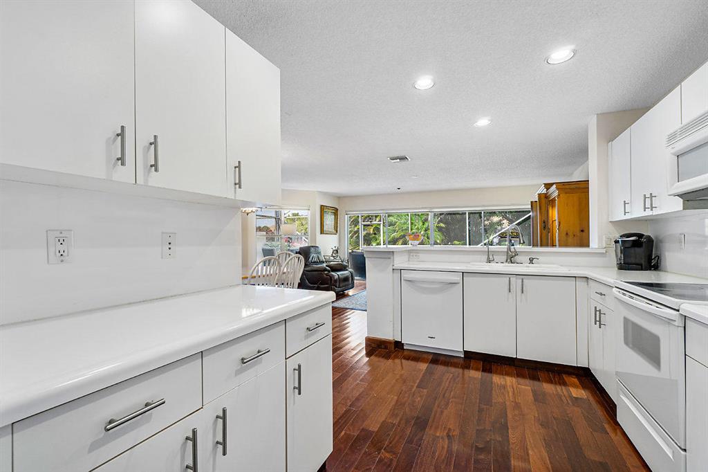 Start living your best life in this immaculately maintained low maintenance townhome. Offering an ideal floor plan with a two-story height ceiling in the great room that flows seamlessly into the open concept kitchen and den. A formal dining room leads directly into the spacious bright and white kitchen. Take note of the large screened-in patio with beautiful vistas and tropical landscaping. Also located on the first floor is a separate bedroom that offers a built-in murphy bed and works dually as a secluded office. Abundant closet space and a nice appointment master bathroom are benefits to the master bedroom retreat. An additional en-suite bedroom upstairs completes this lovely home. The 2-car garage, newly painted exterior, new roof, and new exterior lights make this home a perfect --->