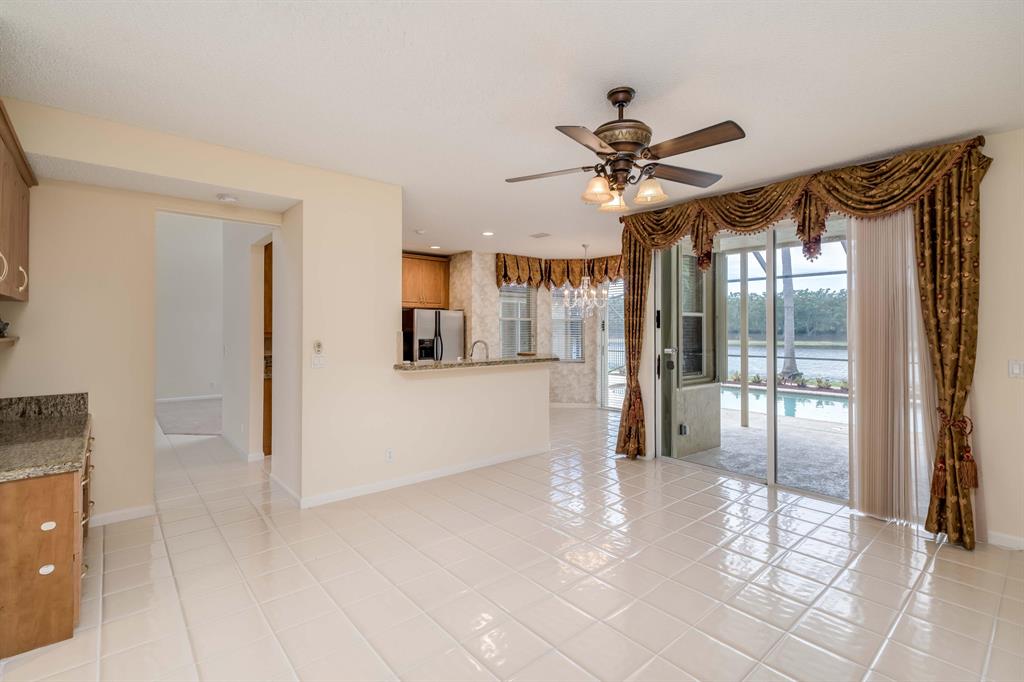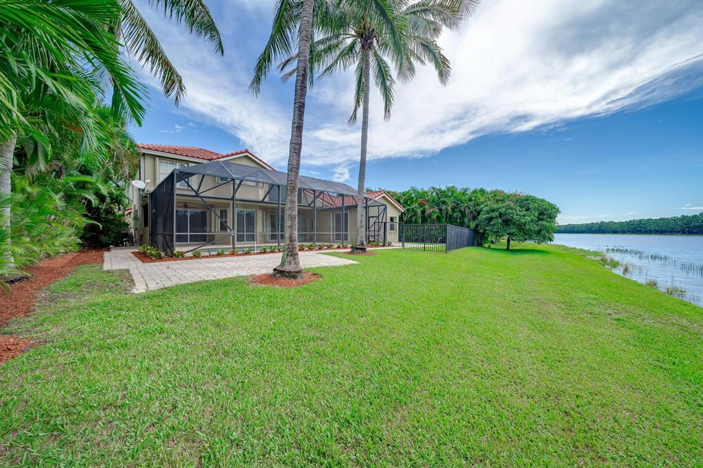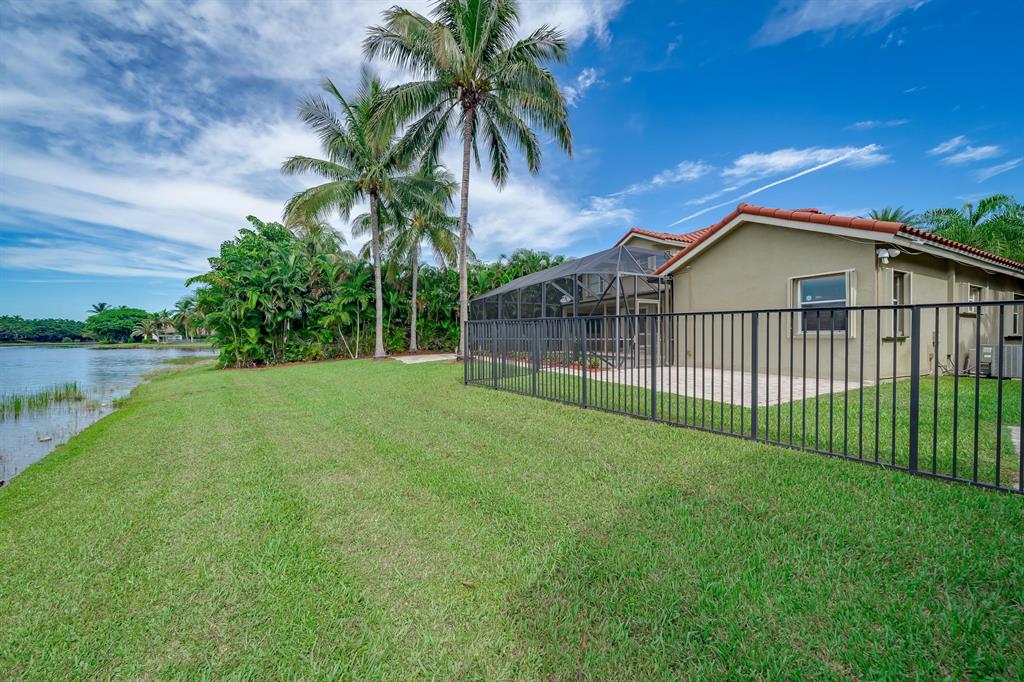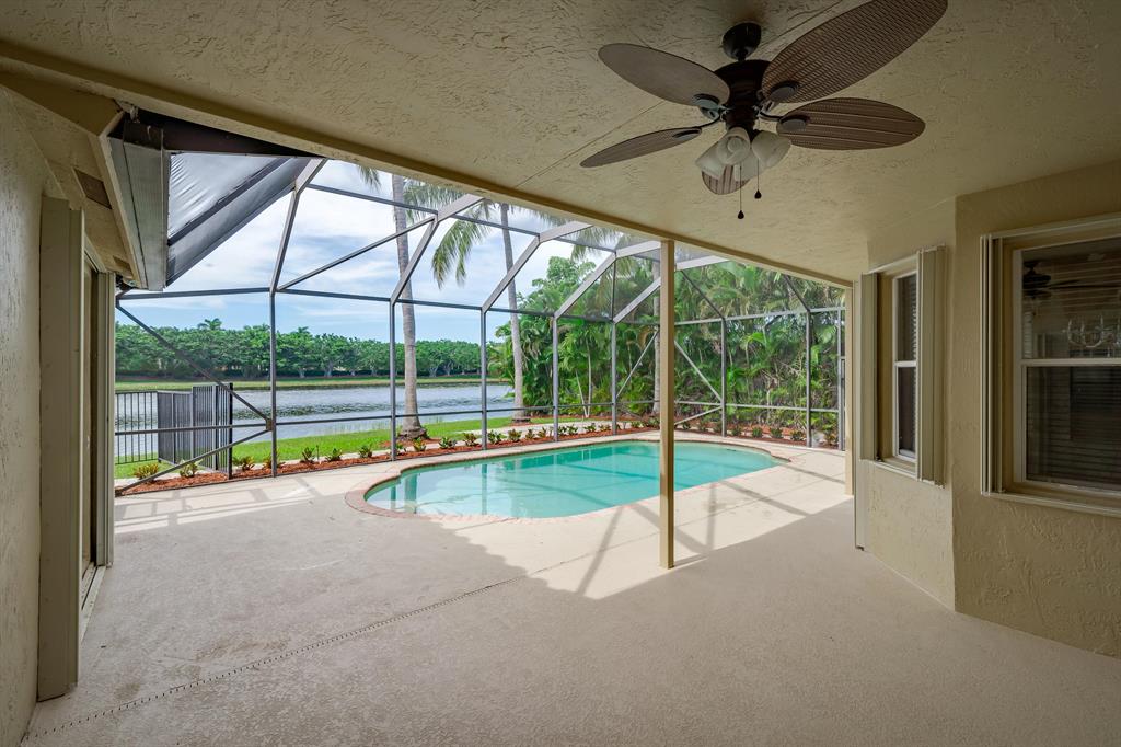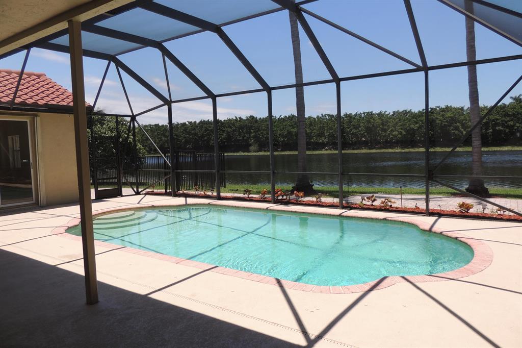 This exceptional Lakefront Pool home of 5 bedroom 3.5 bathroom is set on a private canal/lake lot with scenic water views and no vis a vie. Enjoy the view from the covered/ screened patio which also overlooks the open pool and lushly landscaped fenced backyard. Recently refaced kitchen with quartz counter top island and eat-in breakfast nook. Other additional upgrades are the roof,7 years old, impact glass windows partial and full accordion shutters. Master bathroom has new vanity with granite counter top. Several video and alarm systems including a Ring at door for protection and peace of mind. Dog friendly community. with tennis courts, 24 hour manned guard gate. Top notch schools nearby. What are you waiting for come visit before its gone.