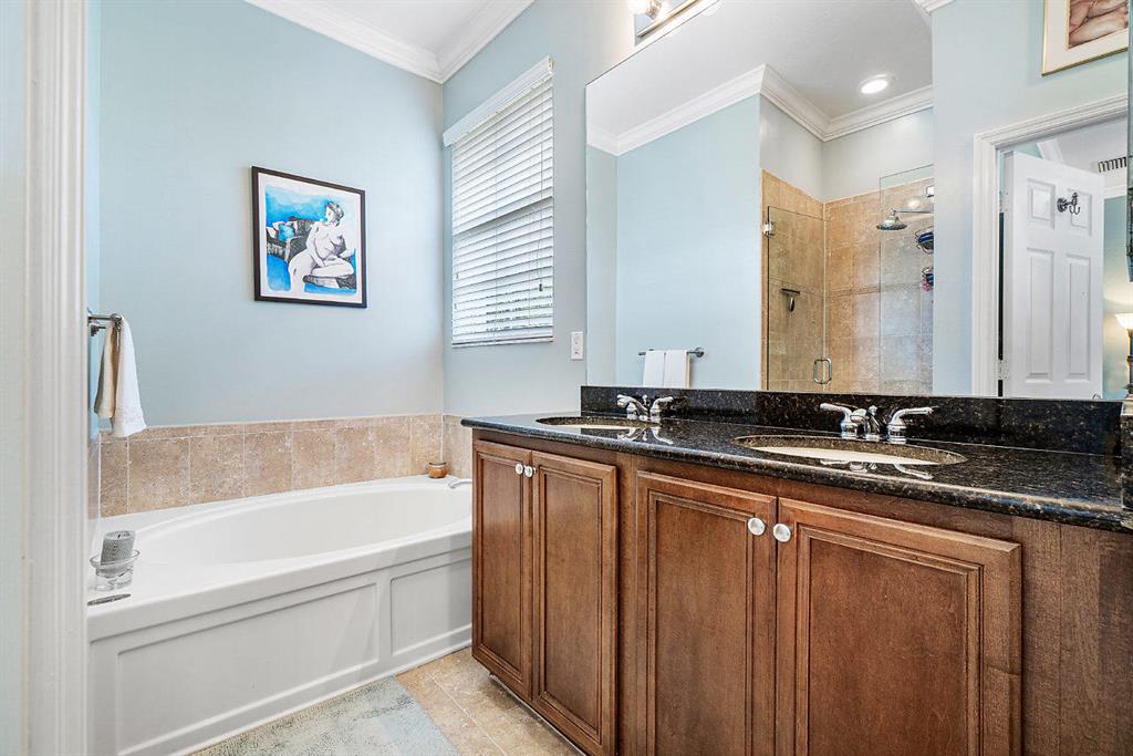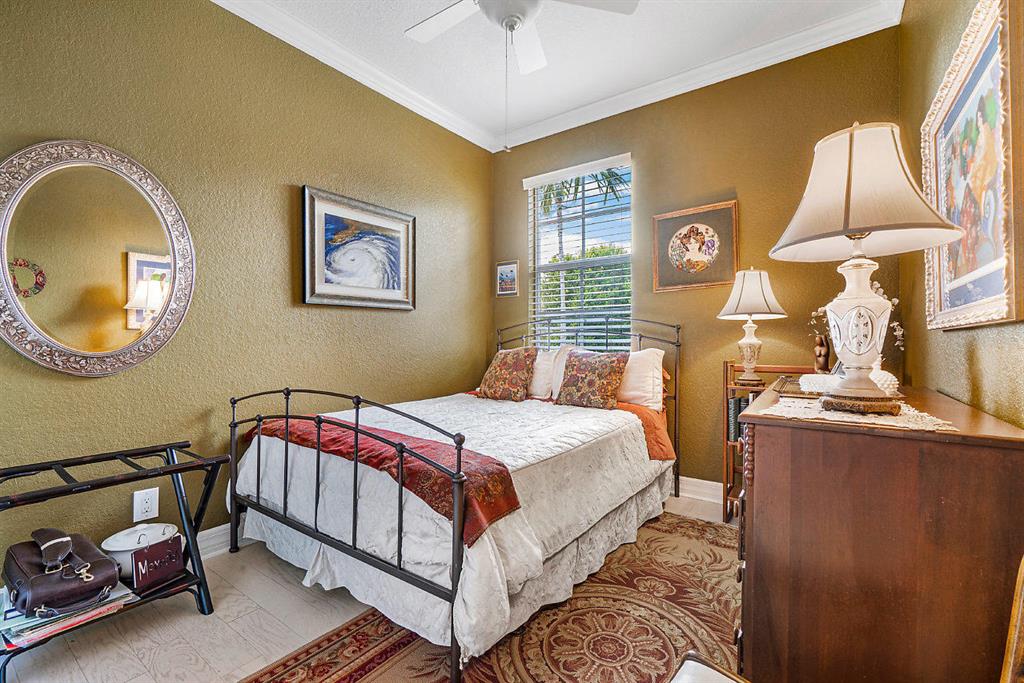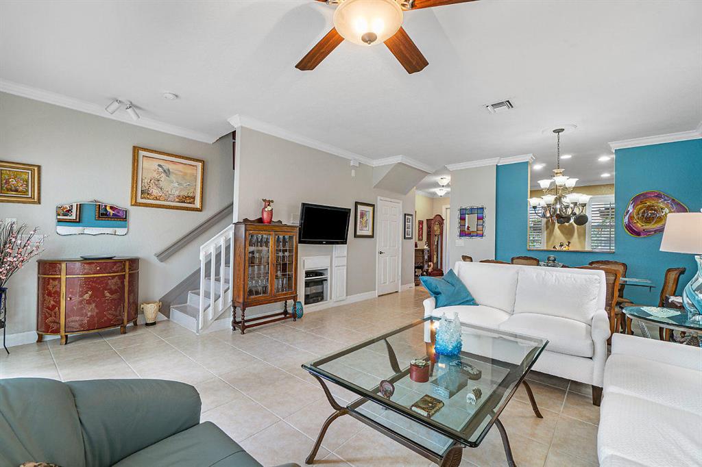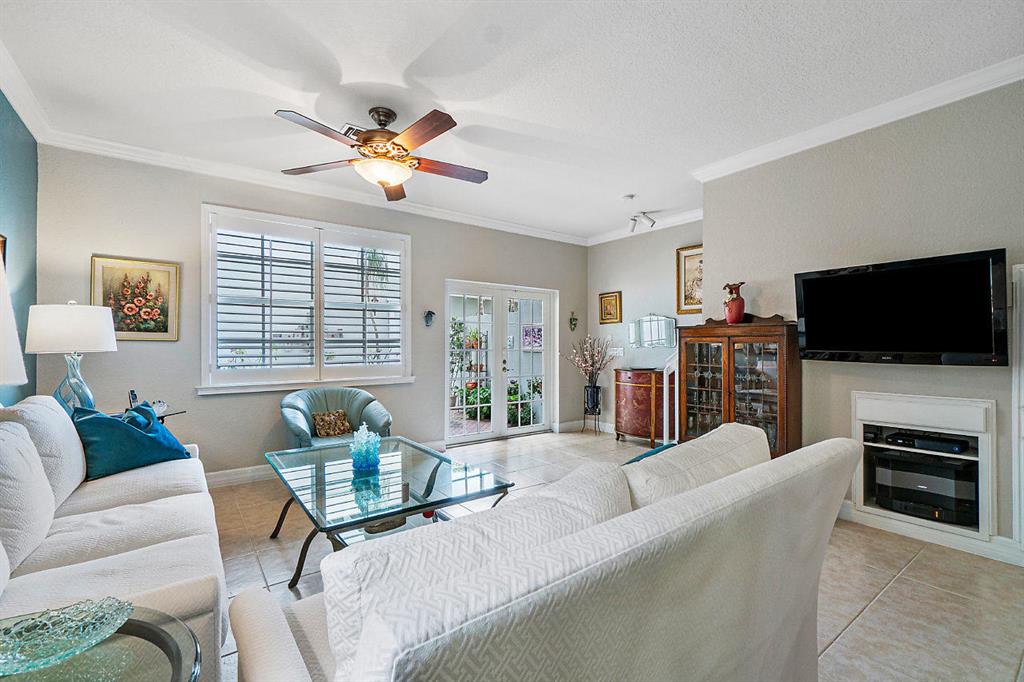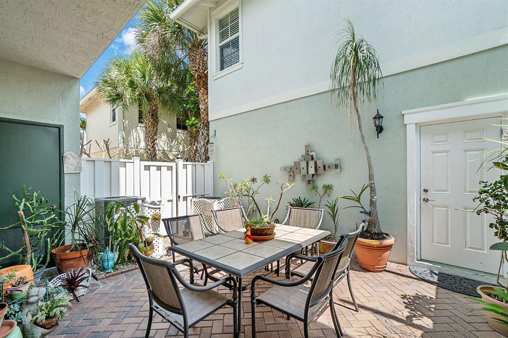 Great opportunity to be in the heart of Boca Raton in a gated community! Beautiful 3 bedroom 2 1/2 bathroom town house with a studio efficiency above garage. Granite kitchen counters and many upgrades! All windows and doors are IMPACT, Crown molding throughout, living room cabinets, plantation shutters, wood flooring upstairs. This impeccably maintained unit has a spacious master bedroom with a large walk in California closet, master bath with duel sinks. This unit has a lovely, private brick paver patio/courtyard joining the 2 car garage. Extra shelving in garage. Centered between the Town Center Mall and I-95, surrounded by shopping, high end restaurants, banks, 5 star hotels, Mizner Park and so close to the beach and attractions, you will love living here!