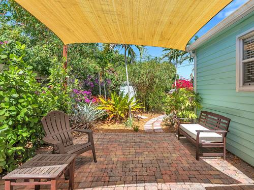 Wow! Where do I begin?! Adorable and Charming 2 Bed, 2 Bath Cottage w/ a detached Cottage and Utility Storage Shed All situated on a beautifully landscaped maintenance free, picket fenced yard. A/C compressor in '19, Newer appliances, Shutters, Dimensional Shingle Roof w/ 15 year life expectancy left, Under Termite Bond, Refinished Natural wood Floors, New interior doors & trim, A vinescaped arbor in the yard which is perfect for outdoor dining with friends. Brick pavers lead to and from throughout the whole property including the driveway. The guesthouse is an intimate space of 240 sq. ft w/ full bath and French Doors opening to and with Garden Views. Take a look at the pics and then come and see it and fall in Love. Welcome Home!