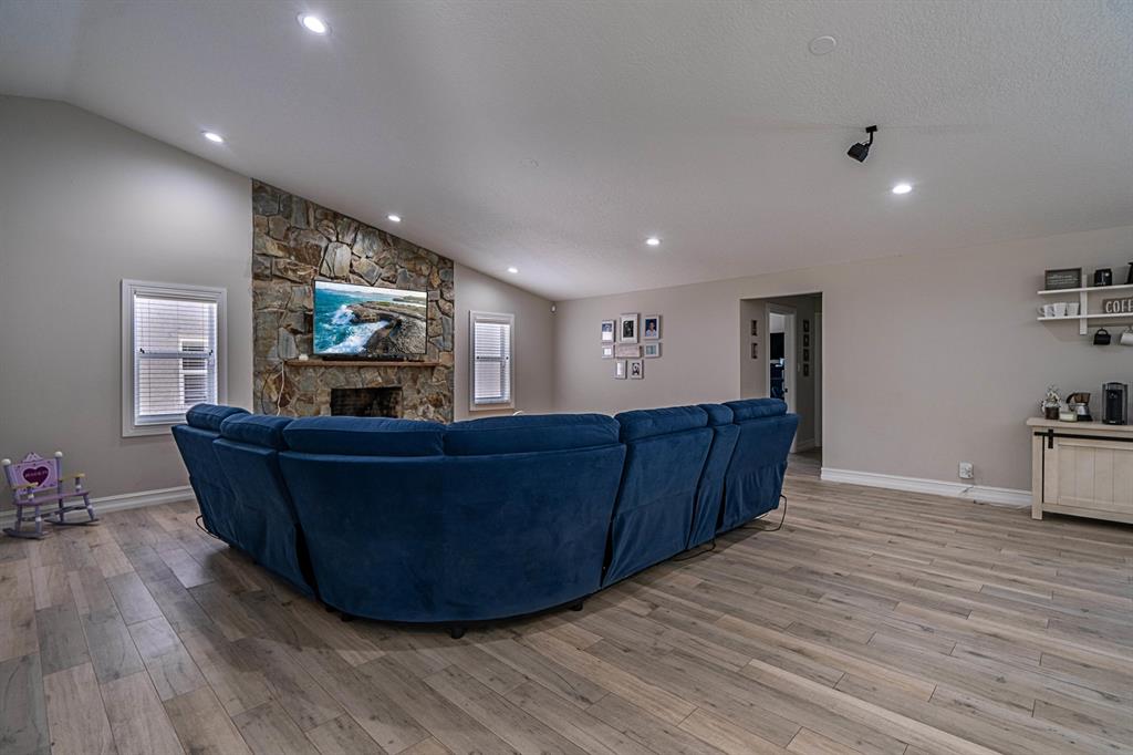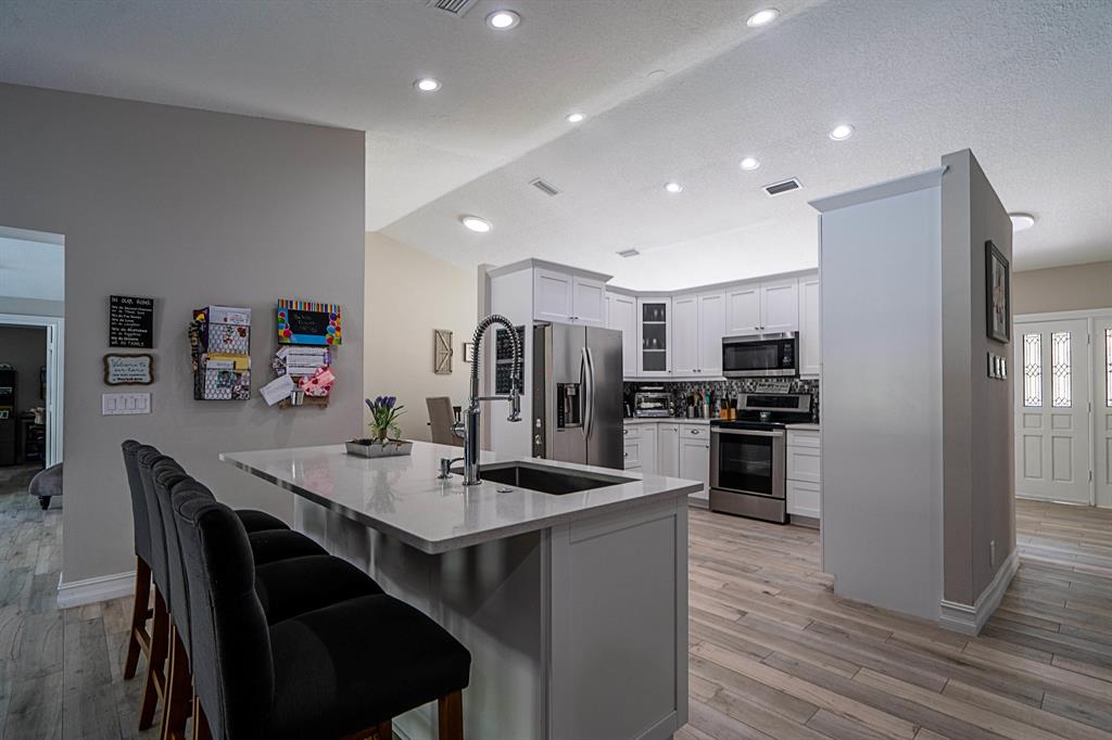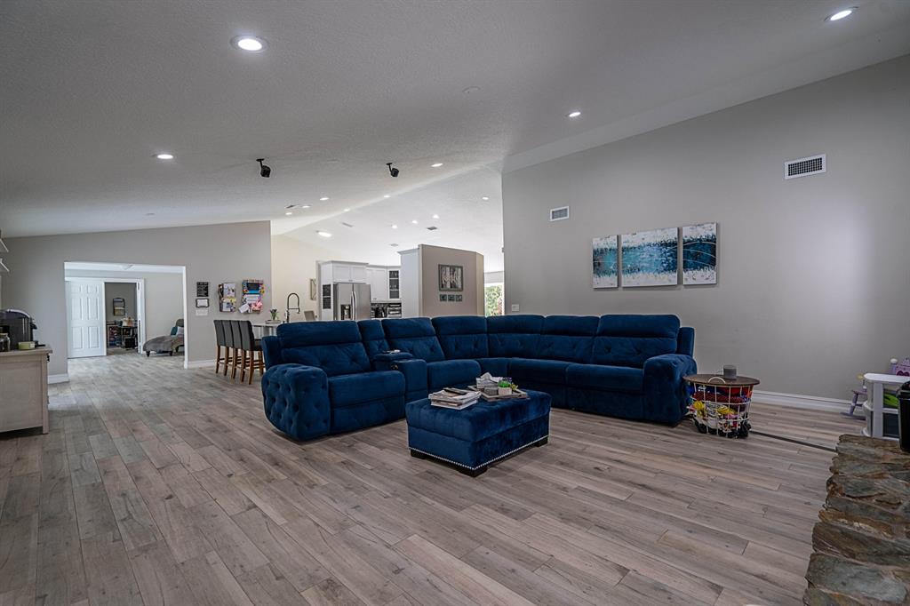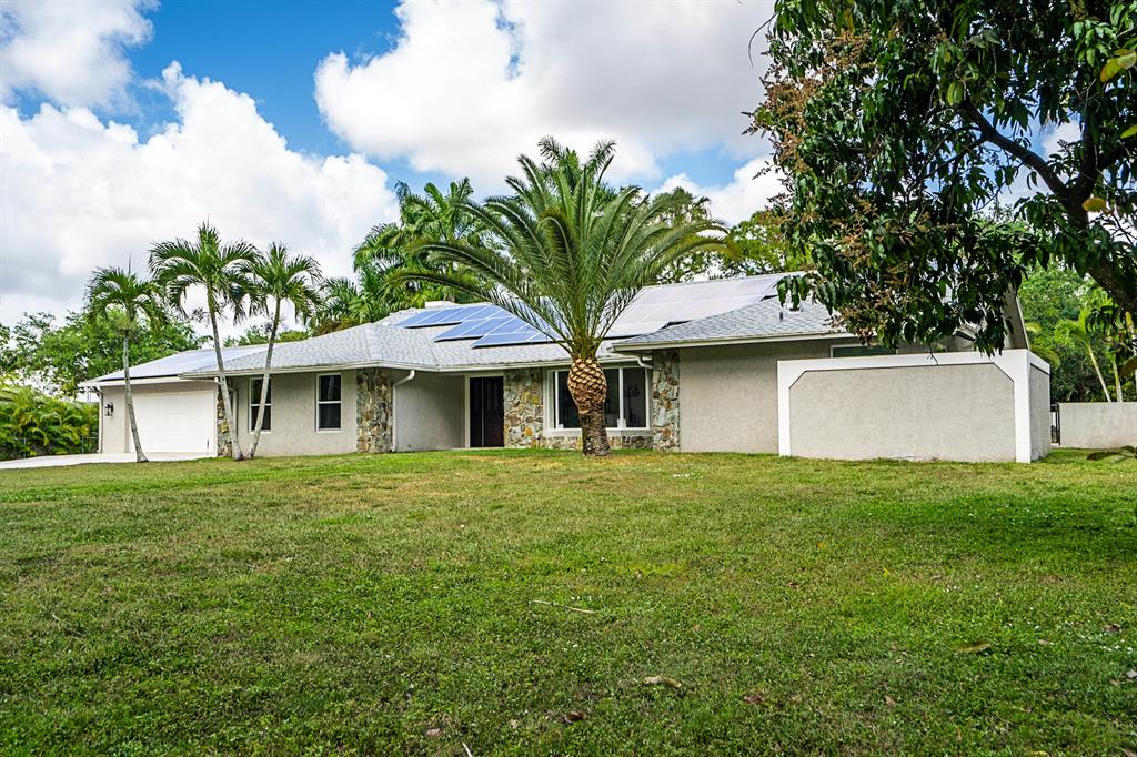Motivated Sellers! This home has been totally remodeled. It is a split bedroom plan with an open concept living. Vaulted ceilings with lots of natural light, Sitting on almost 2 acres with several mature fruit trees, It features a salt water pool. And best of all is has solar panels. The current owners monthly electric bill is less than $50.00 a month. There is a fifth bedroom with the third full bath and living area detached from the main house that is also updated. This property is fully fenced with an electric front gate.
