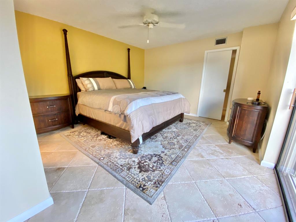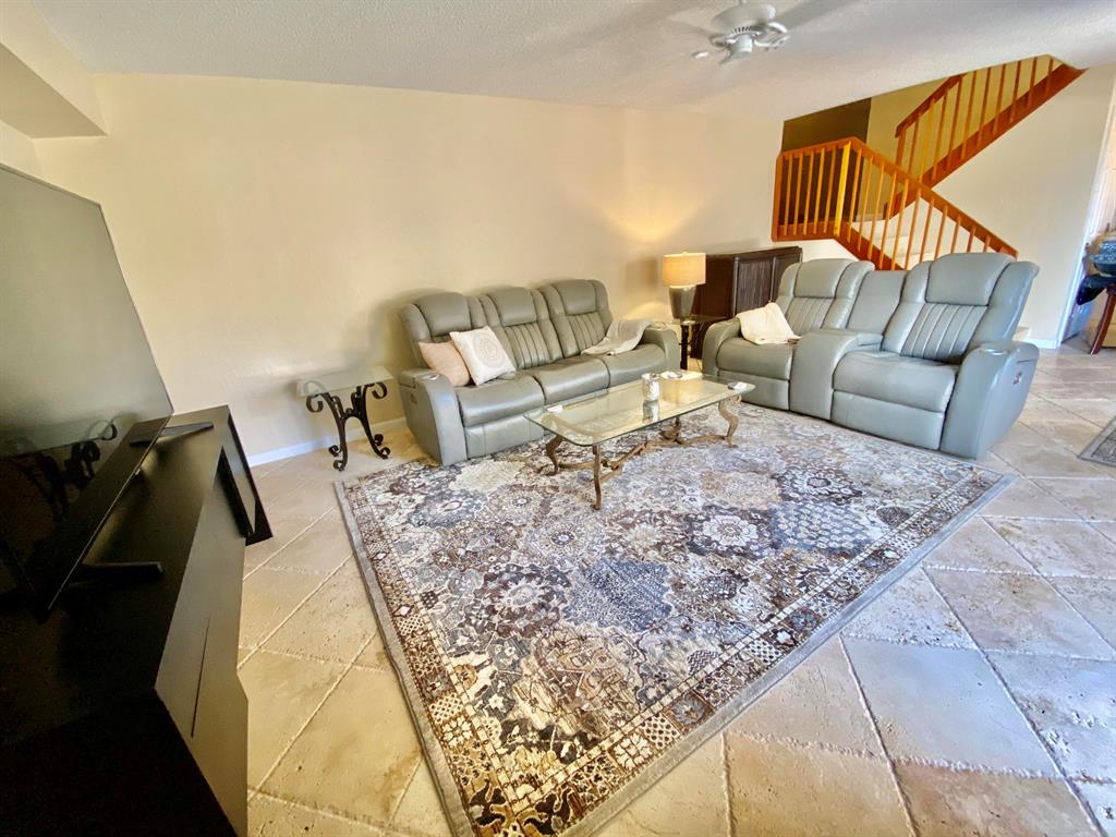This one stands out! Come check out this unique 2 bedroom 2.5 bath townhouse. Wonderful finishes! Diagonally laid travertine tile throughout the house. A tastefully updated kitchen, floor to ceiling cabinets, granite counter tops, extended counter surface, pullout pantry and slow closing drawers. New washer and dryer with large capacity. Spacious floor plan, both bedrooms are master suits with their own private bathroom (and underneath cabinet lighting). Master walk-in closet and 2 sink bathroom in the main.Tucked away on a quiet cul de sac, balconies have view of the beautiful greenery and water. A great size patio for your entertaining and all your outdoor needs. Accordion shutters to the large sliding windows and an all concrete construction.