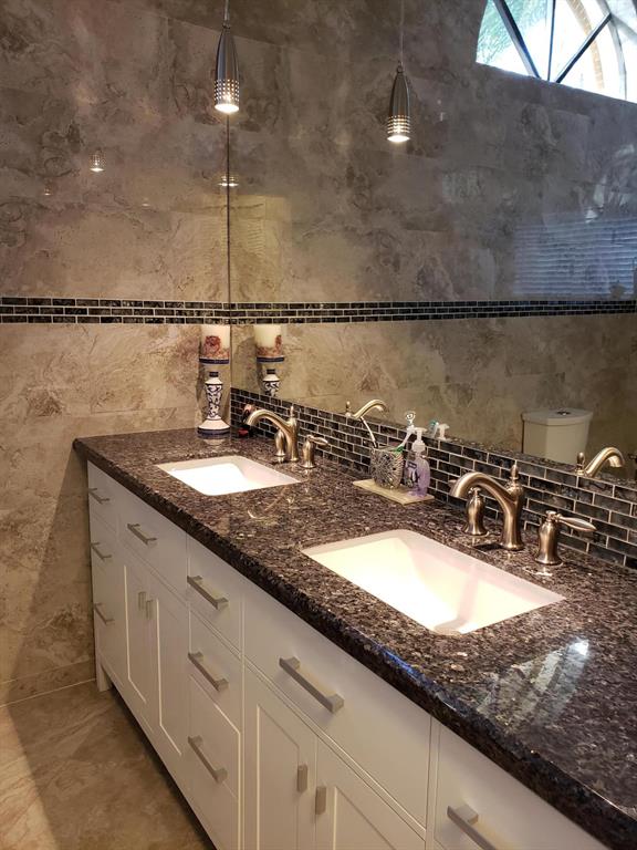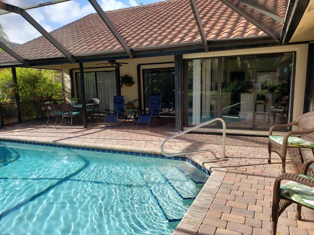Enjoy a completely upgraded kitchen which boasts new 42-inch white shaker cabinets w/soft close pull out drawers, stainless steel appliances, stunning quartzite countertops. Large quartzite island with wainscoting allows enough room for the whole family. The master bath includes floor to ceiling marble tile, large granite countertop, custom vanity, dual sinks & large walk in rain shower with glass tile accents. The 2nd bath includes porcelain tile flooring, double vanity sink & shower/tub combo w/tiled walls.Wood look laminate flooring thru out the living areas & bedrooms with 5 1/2 inch base board molding. Pavers on pool deck, patio seating area, walkway & driveway. Screen enclosed pool to enjoy serene water & golf course views. Whole house Accordion Hurricane Shutters.