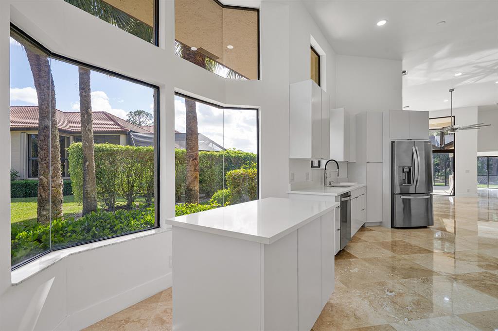 Located in Breakers West in the sought-after Sand Drift Villas. This exceptional and fully renovated corner private villa offers 3 spacious bedrooms and breathtaking spa like bathrooms. The home boasts the most amazing preserve views that are completely private and a fully screened expansive lanai patio area for indoor/outdoor living at its best. Fabulous open floor plan w/ soaring ceilings that allow the light to pour in and a fully renovated kitchen with stunning quartz waterfall island, wine-fridge, 2nd island and all new appliances. Master suite & 2nd bedroom both offer outdoor private courtyards and walk-in fitted closets. 2017 new water heater and HVAC. Every detail has been thought of in this renovation. What makes this community so special is that you have two renown country...