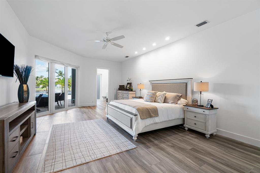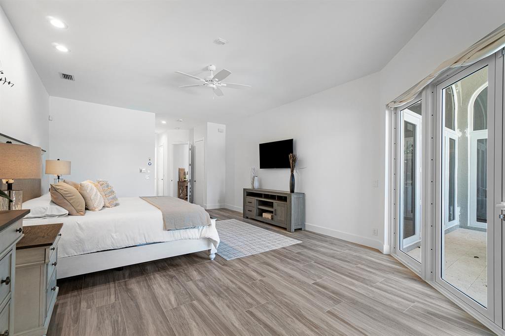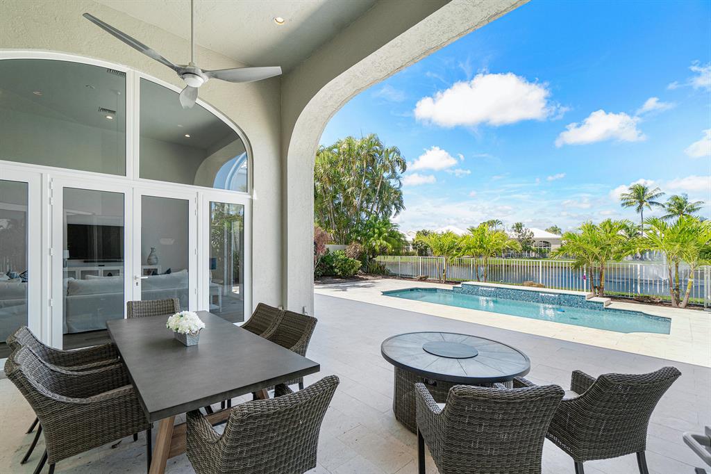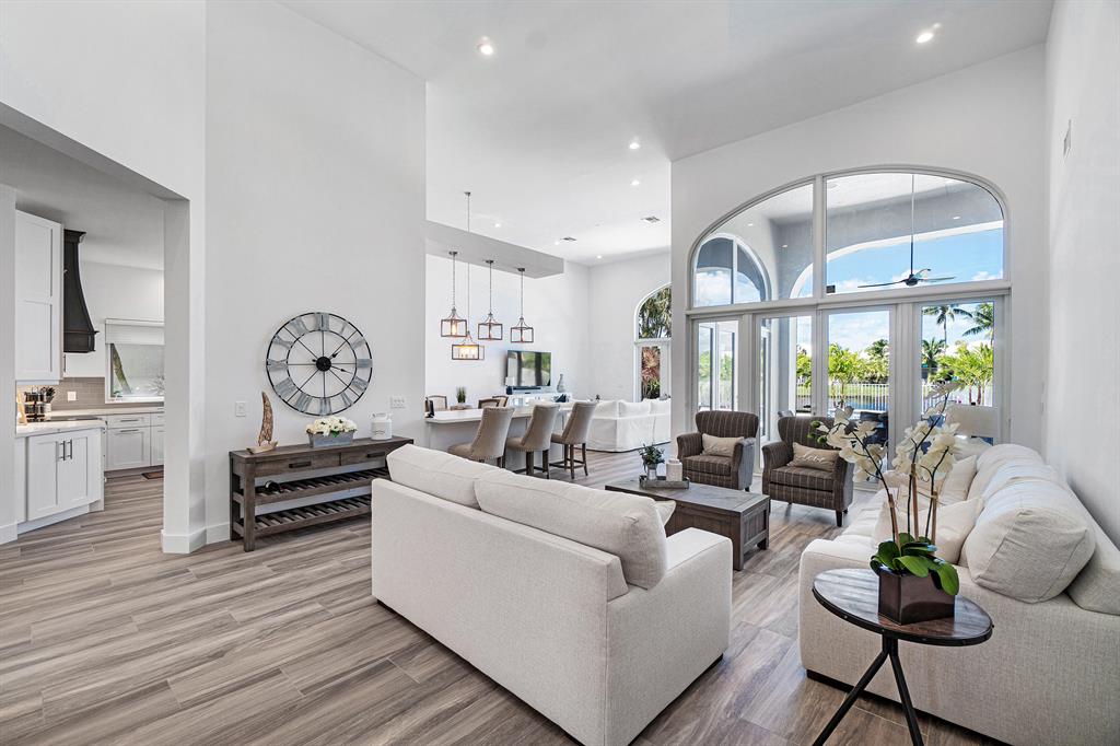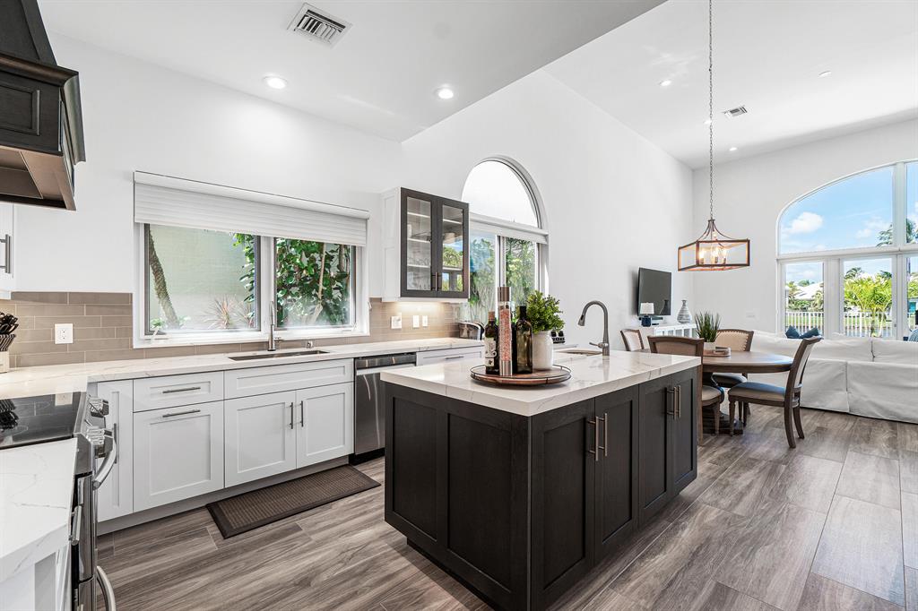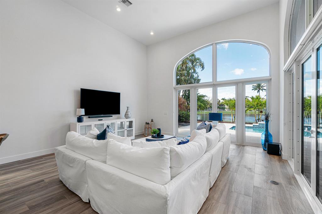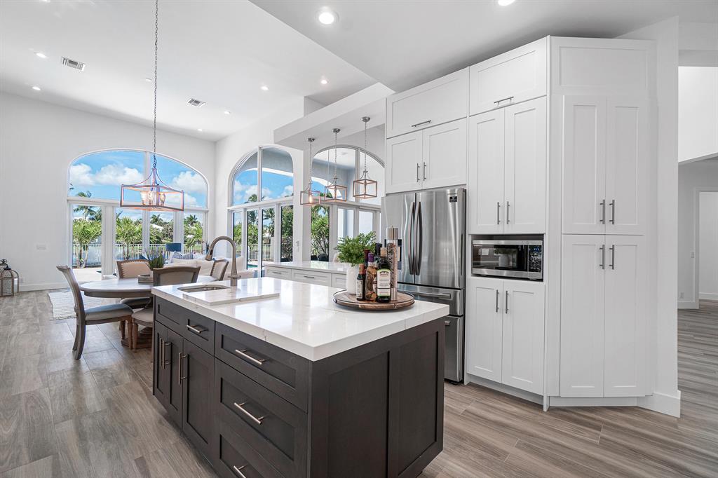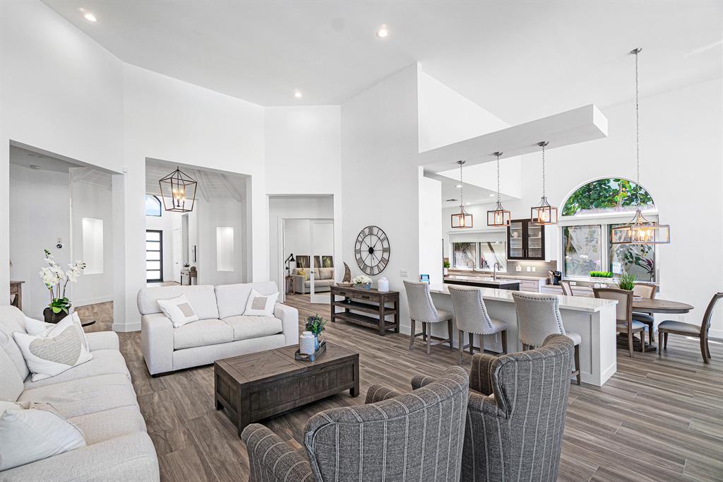 This remarkable, newly renovated contemporary home is striking and one not to be missed! Every element of this home has been redone with the highest level of finishes in a neutral and aesthetically pleasing way. Offered fully furnished, with a brand new roof and impact glass throughout the entire home. The open concept kitchen is beautifully designed and ideal for entertaining while offering immense storage. The master retreat is large in scale and offers with his/her separate master bathrooms, large walk-in closets and direct access to the covered patio. The two additional bedrooms are very spacious and are both en-suite. A sun-filled and private den/office is the located off of the impactful rotunda hallway. Spacious outdoor areas with marble pavers lead to the newly refinished pool ->