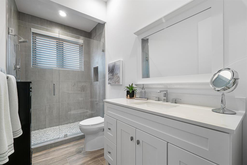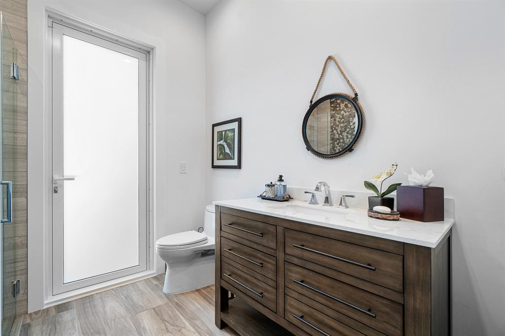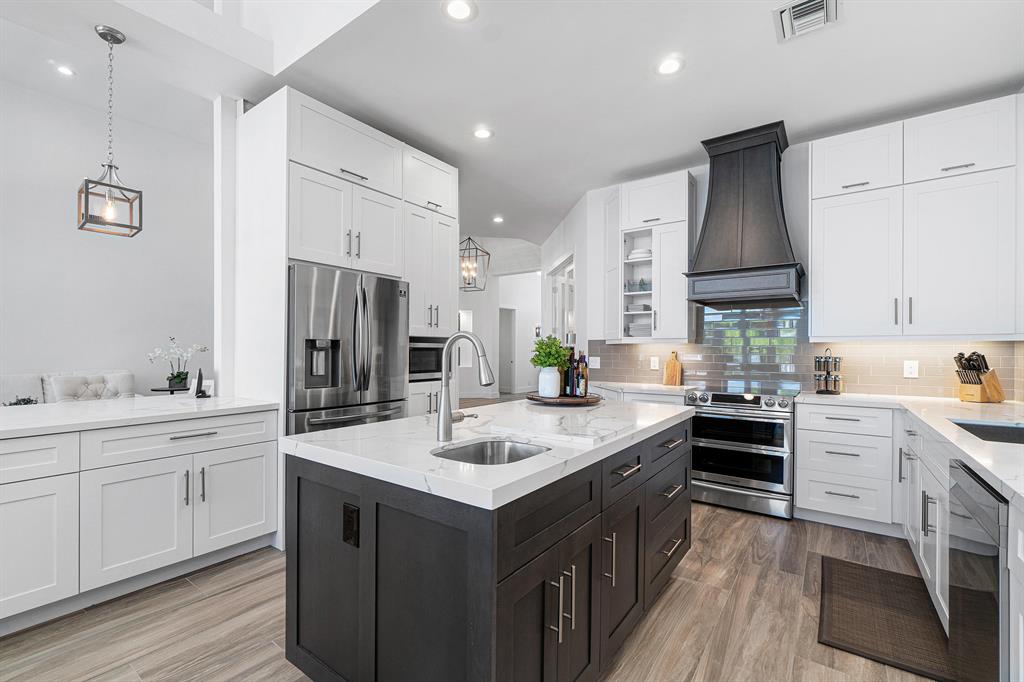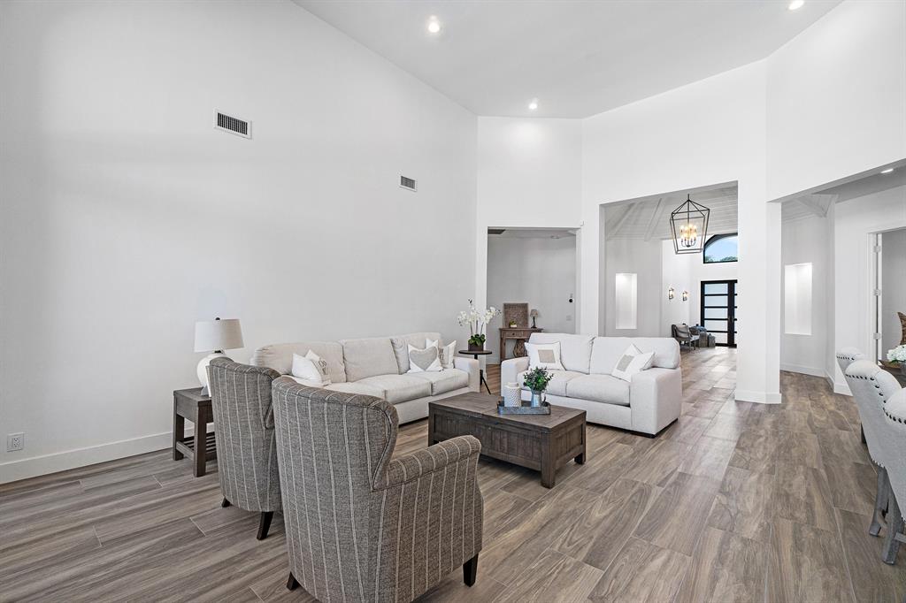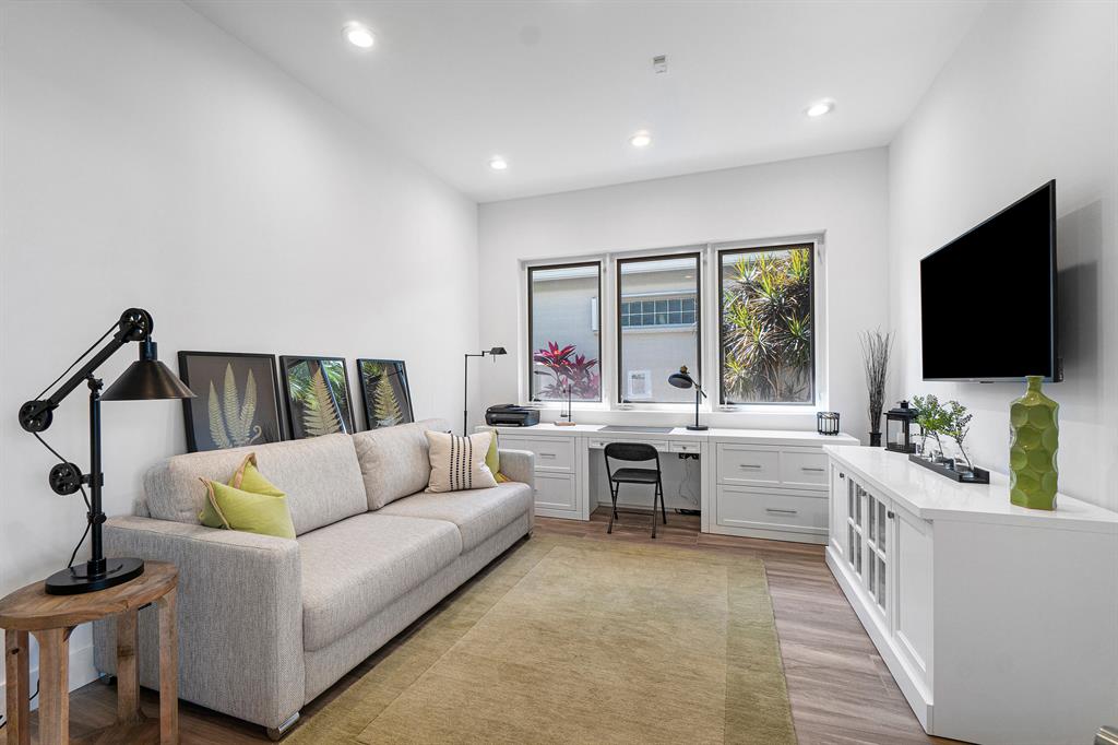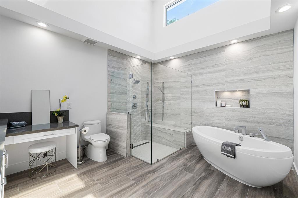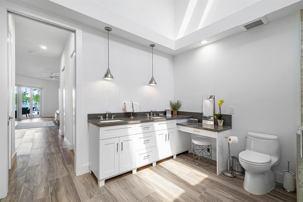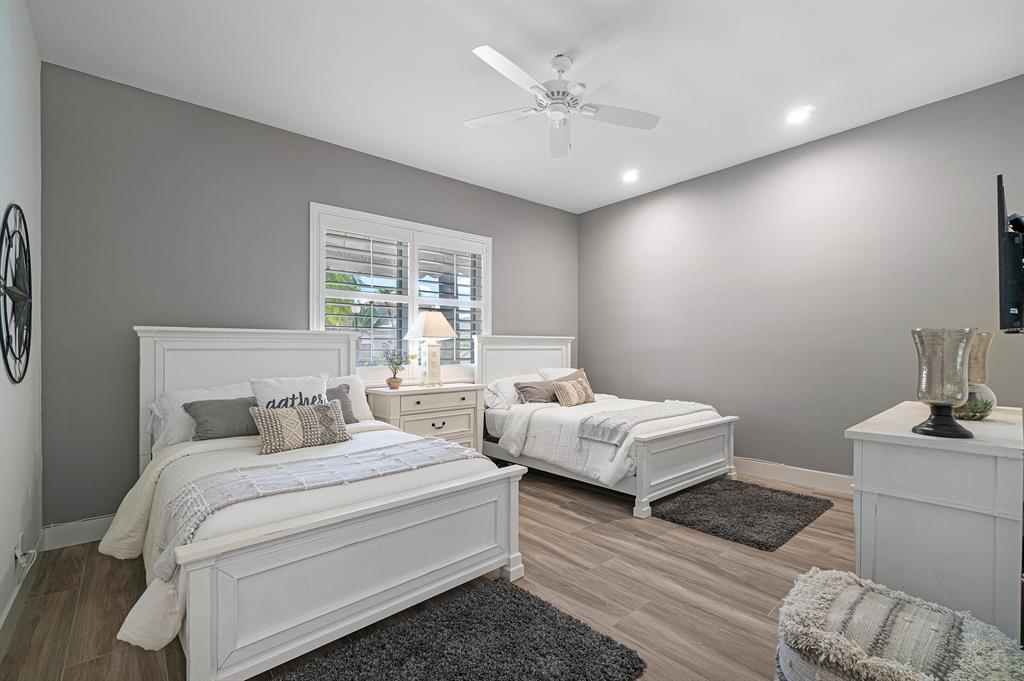 This remarkable, newly renovated contemporary home is striking and one not to be missed! Every element of this home has been redone with the highest level of finishes in a neutral and aesthetically pleasing way. Offered fully furnished, with a brand new roof and impact glass throughout the entire home. The open concept kitchen is beautifully designed and ideal for entertaining while offering immense storage. The master retreat is large in scale and offers with his/her separate master bathrooms, large walk-in closets and direct access to the covered patio. The two additional bedrooms are very spacious and are both en-suite. A sun-filled and private den/office is the located off of the impactful rotunda hallway. Spacious outdoor areas with marble pavers lead to the newly refinished pool ->