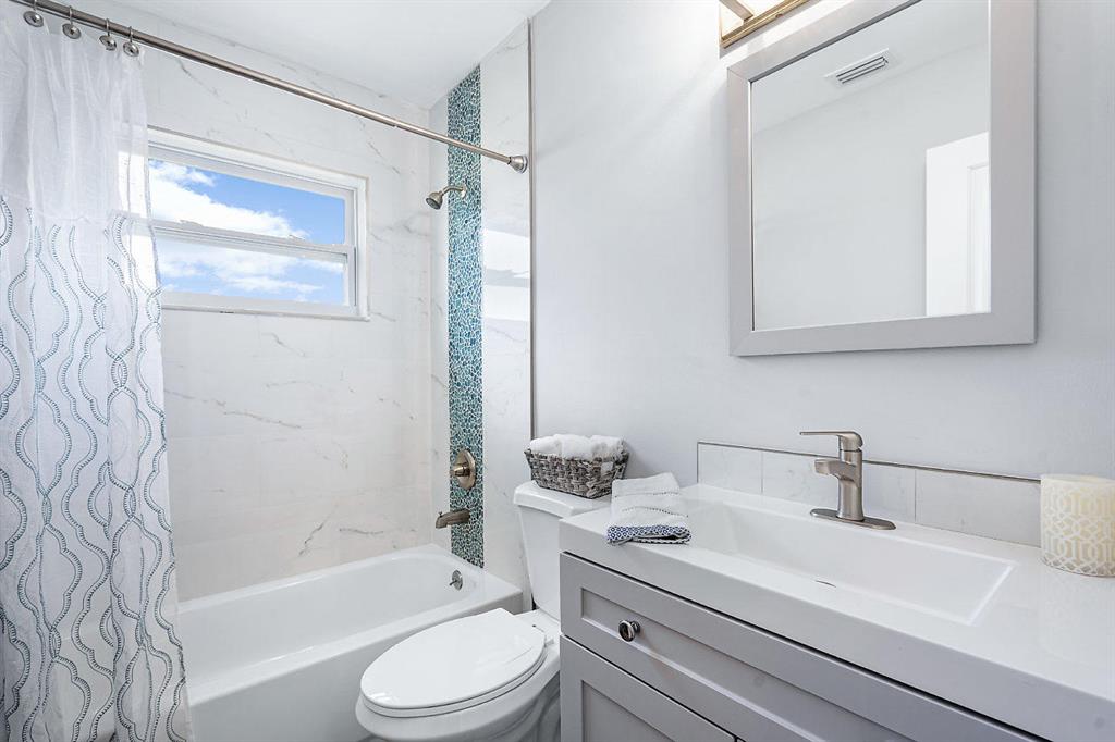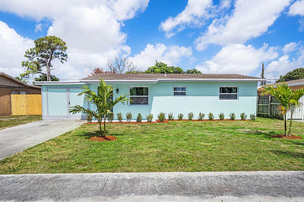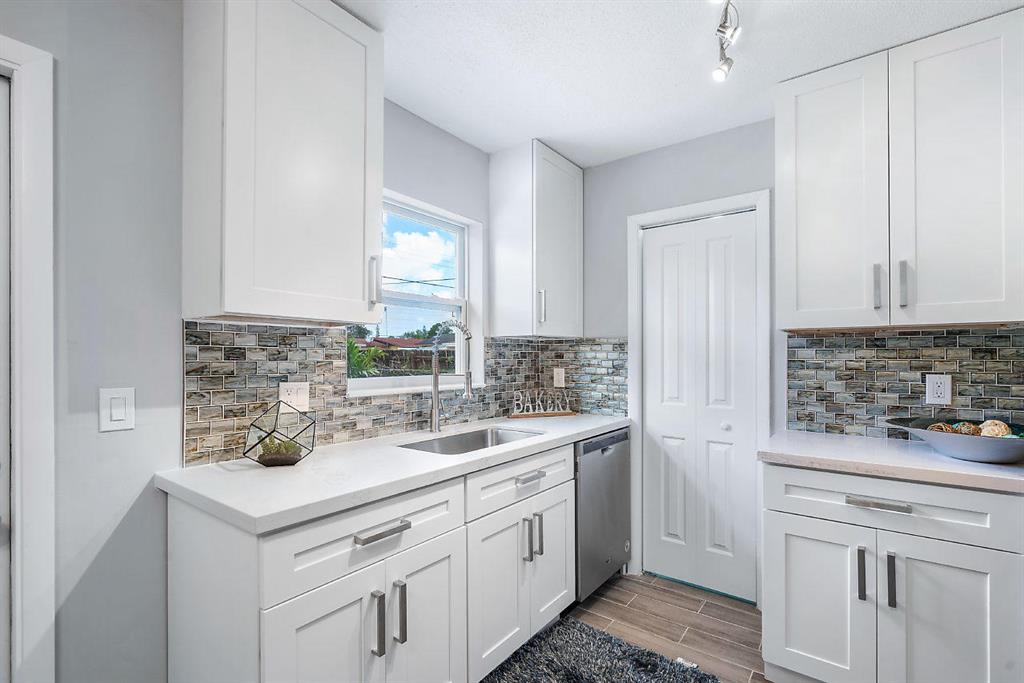 LOCATION - FULLY RENOVATED - IMPACT WINDOWS - HUGE FENCED IN YARD! This concrete block, single family home is located a great community with no homeowners association. The home has been completely renovated with high end finishes. Impact glass throughout, wood plank tile floors, 5 1/4 baseboards, fresh paint inside and out, brand new central AC system, new kitchen with custom wood shaker cabinets with soft close doors and drawers, custom tile back splash, exotic quartz counter tops, stainless appliances with gas cooking. Upgraded lighting throughout, brand new outlets and a fully upgraded bathroom with brand new tub, vanity, and shower tile. New plants and palm trees installed along with a brick paver back patio! This house is move in ready and like new!