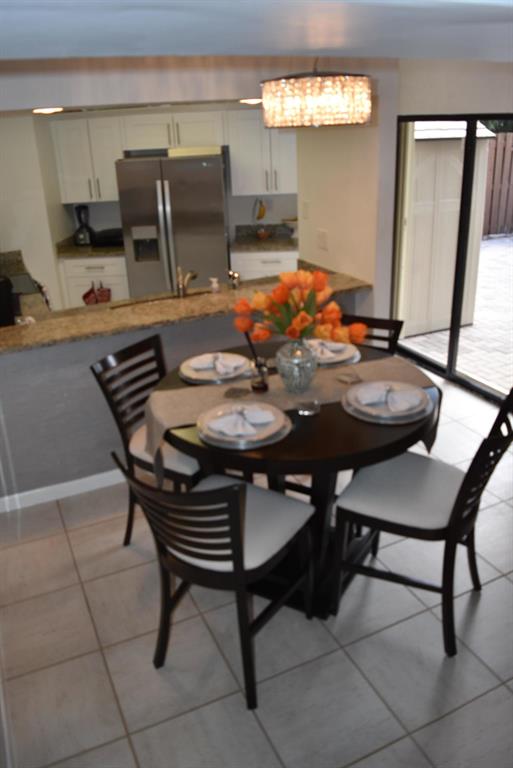 Beautifully remodeled 2 bedroom & 2.5 bathrooms townhouse located in the beautiful Boca Rio Town homes. Kitchen has been updated with tile floor, granite counter tops. The first floor has all tile. All bathrooms are updated and have granite counter tops and tile. The upstairs is freshly painted and has carpet. Private fenced courtyard patio with shed. Balcony on second floor overlooks the beautiful landscape. Accordion shutters throughout. Schools are 'A' rated. Community pool, tennis and racquetball. Roof is maintained by the association. Low HOA! Ready to move- in. Close to the highway, shopping and dining. This one won't last!