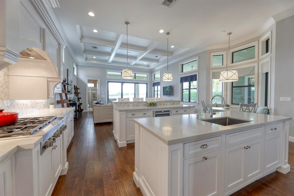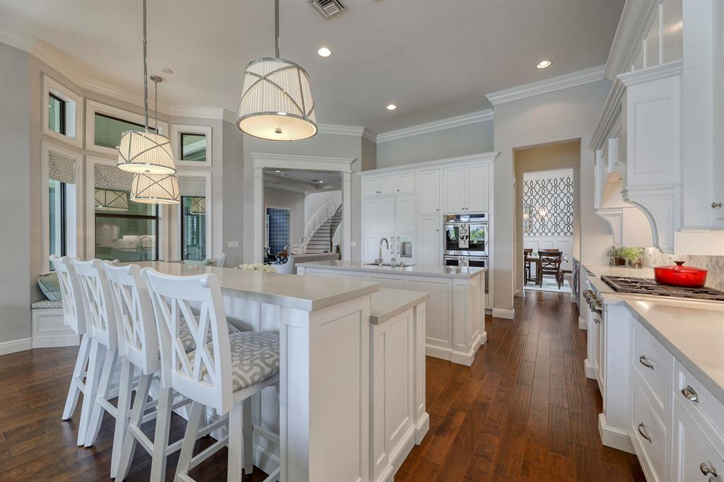 Endless long lake views from this breathtaking 5-bedroom, 4 car garage / 5298 sq.ft. waterfront estate home with governor's driveway in the prestigious community of Parkland Golf & Country Club. This ''New England'' style architechtural masterpiece is highly appointed with structural upgrades and designer appointments throughout. Features include Wood flooring, custom millwork, coffered ceilings and Chef's Dream Kitchen boasting double island, upgraded cabinetry, Caesarstone quartz countertops, Carrara marble backsplash, Thermador built-in refrigerator, Jenn Air microwave/double oven/cooktop and Miele dishwasher.