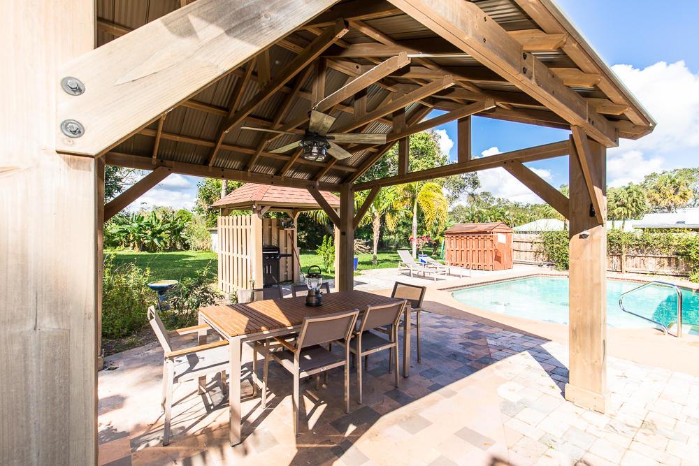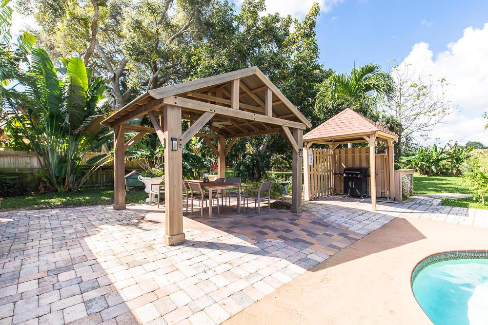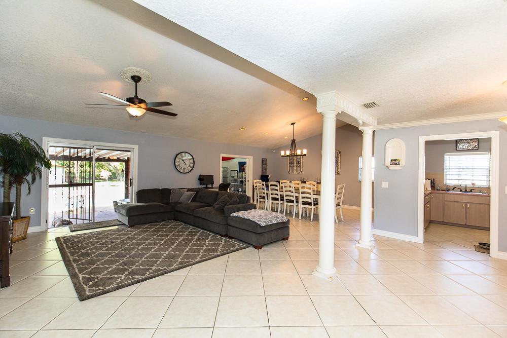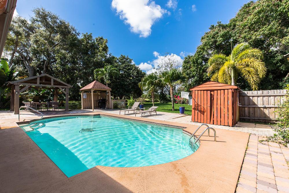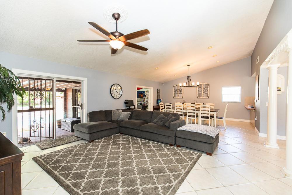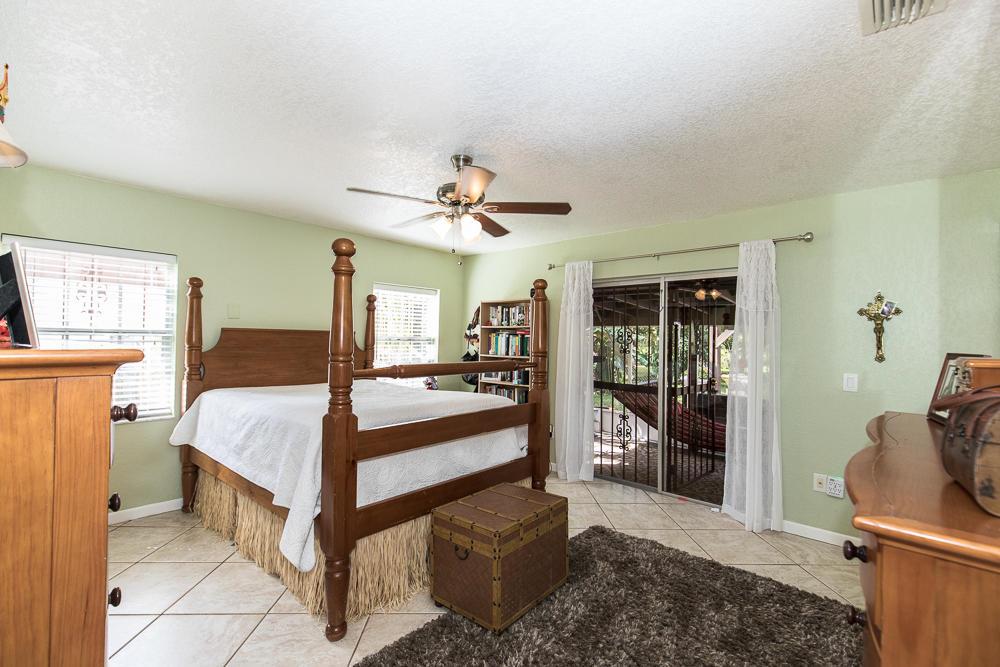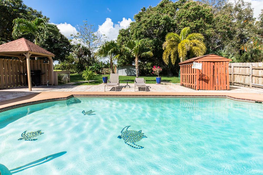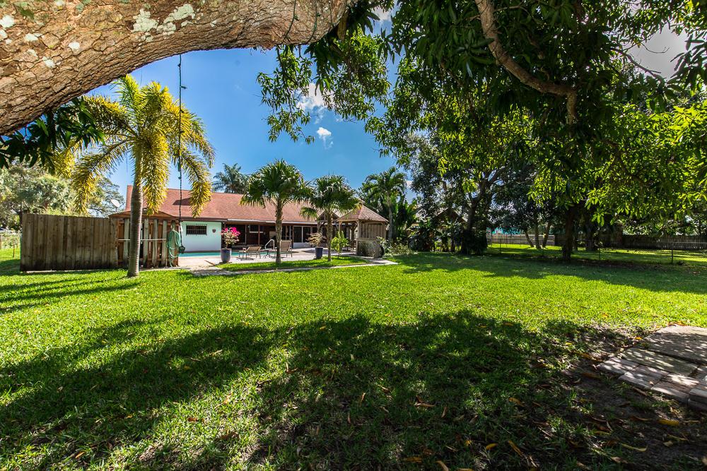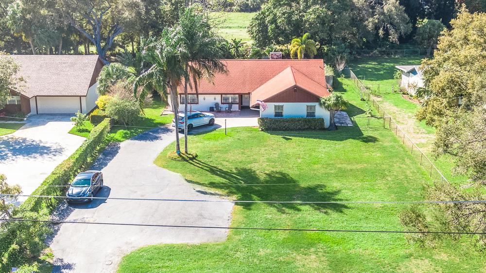 WOW. Spacious well kept single family pool home on over a half an acre with a numerous variety of fruit trees. Wide open living areas with vaulted ceilings and 18 inch tile floors throughout. Kitchen features Stainless steel appliances. Over-sized 2 car garage. Fully fenced .64 acre lot with in ground pool, gazebo, storage shed & both a covered porch & screened in porch. Mango, banana, avocado, Loquat, cherry,starfruit, fig, orange, lemon & peach trees.