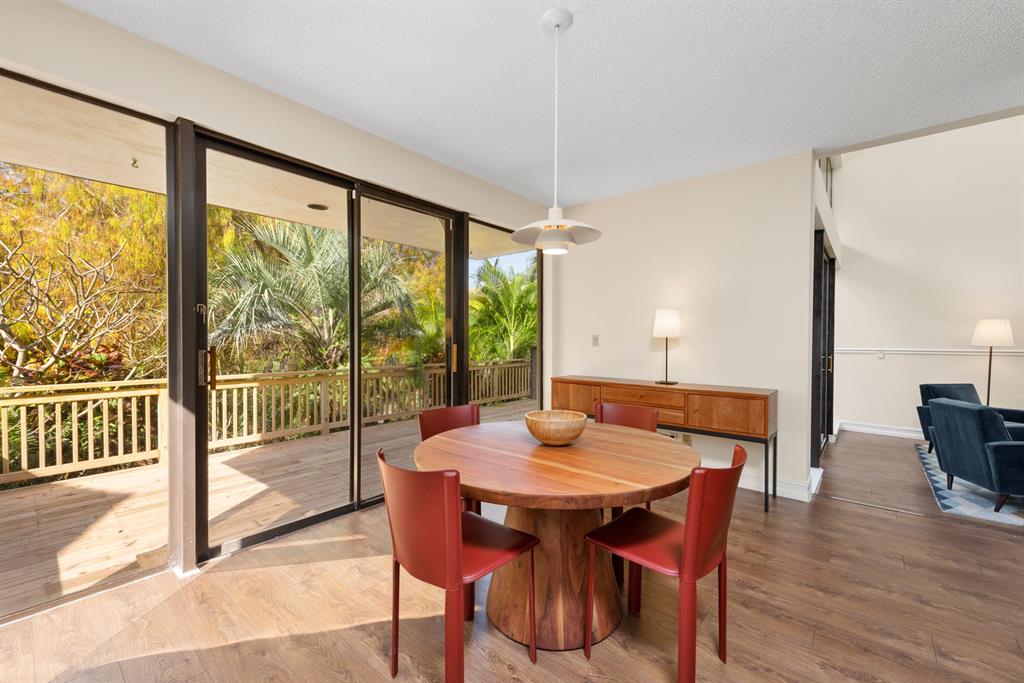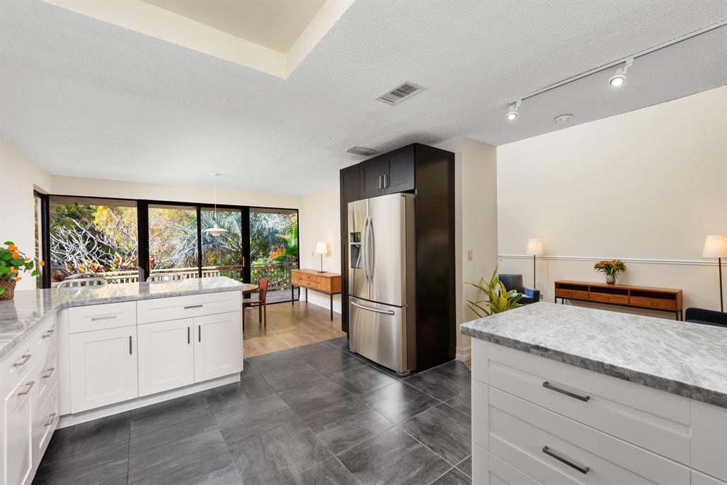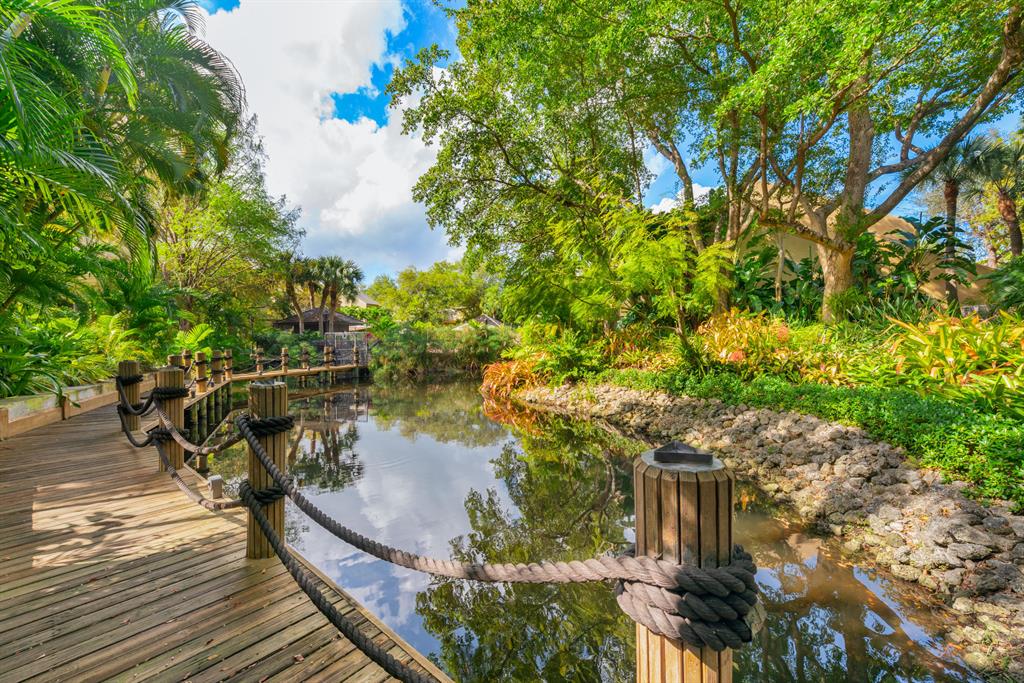 Updated and remodeled bright and airy two-story move-in ready townhome with open floorplan. Located in meticulously cared-for neighborhood. Huge vaulted ceilings everywhere. End unit with extra windows. Large and private brand-new oversized deck patio overlooks tropical lagoon. Working fireplace! 3 large upstairs bedrooms with vaulted ceilings and spacious closets. 2.5 baths. The remodeled kitchen features stainless steel appliances with quartzite countertops, custom wood cabinetry, and new floors. Sliding glass doors surround the breakfast room, ready for indoor-out living. Master with large tub and natural light, walk-in closet, double sinks, & private balcony with water views. Large laundry room. Fresh paint throughout. East Boca Raton Hidden Treasure! (See Supplement Remarks)