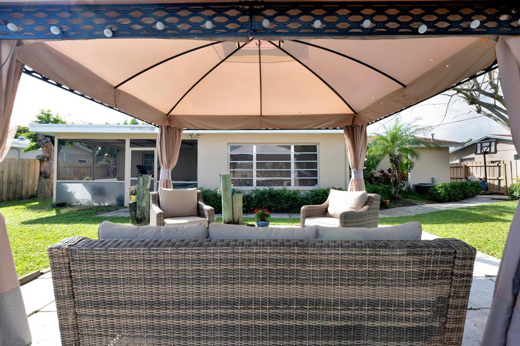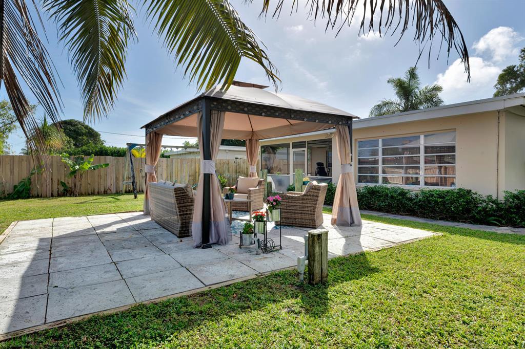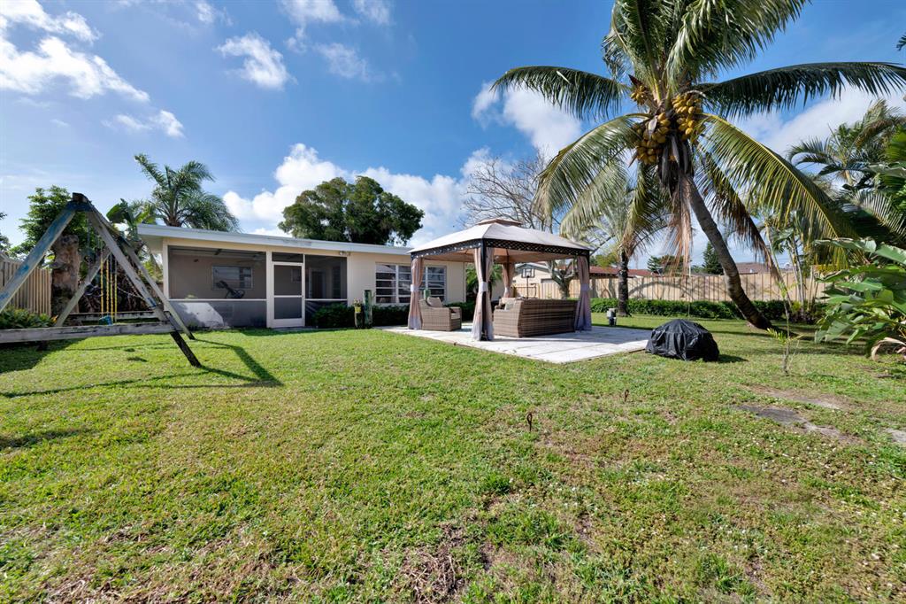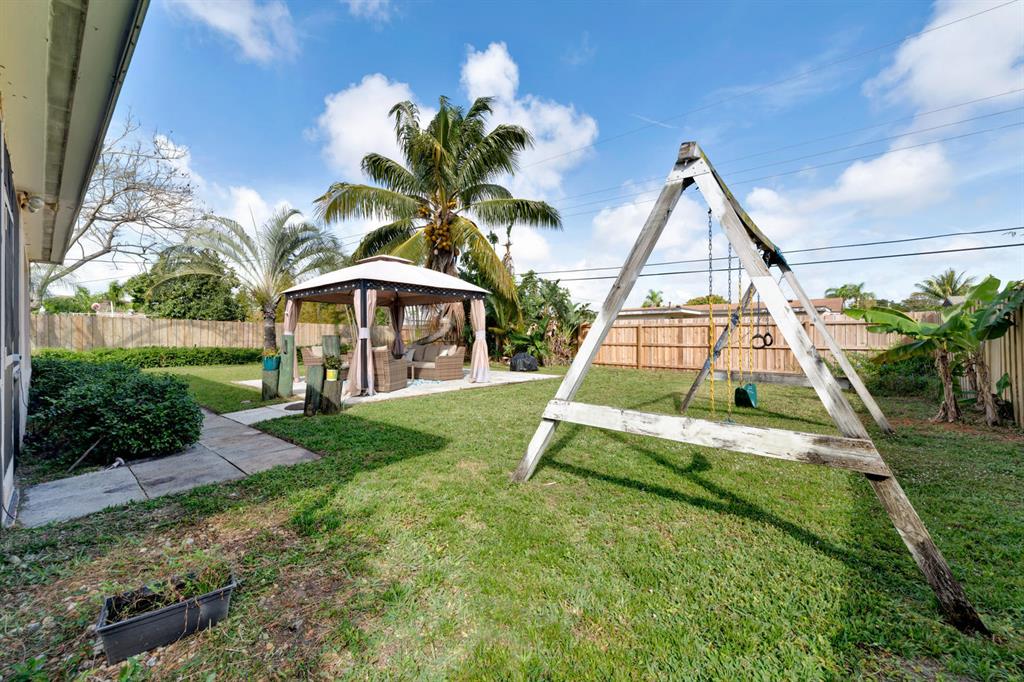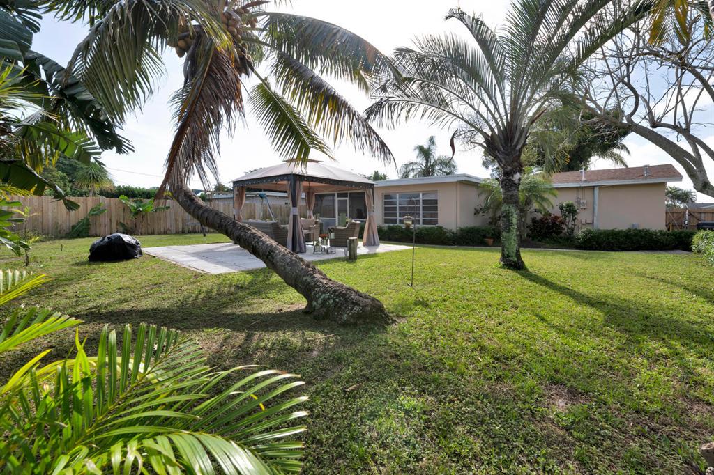 Nicely updated 3 bedroom/2 bath CBS mid-century modern house with attached garage. Beautiful ceramic tile floor throughout! Updated kitchen with oak cabinets, and granite countertop. Both bathrooms nicely updated. The interior features both a living room area and a family room in back of the house. A/c compressor approximately 2 years old, and air handler appoximately 5 years old. 2004 main shingle roof, and 2018 flat roof. Large screened in back patio. Gas water heater. Newer washer/dryer. Beautifully landscaped front and back yards with well water for the sprinkler system. Fenced in back yard with a gazebo, which is a great place to relax! Extra wide driveway provides ample parking. Great location that is close to get to either Forest Hill Blvd or 10th Ave N to I-95. Must see!