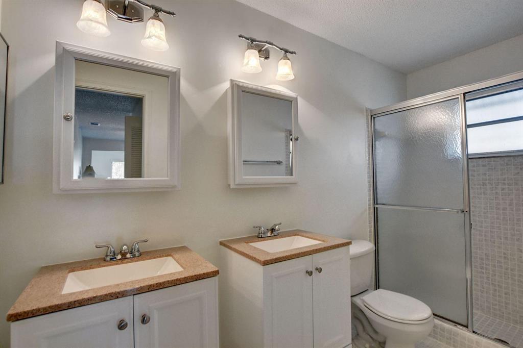 JUST REDUCED!! Stunning Waterfront Home on Wide Lake! Meticulously maintained with beautiful white tile on a diagonal throughout. Wide open backyard with large patio overlooking expansive lake views. This spacious open floor plan has an upgraded kitchen with newer wood cabinets, stainless steel refrigerator and stove, separate island and hi-hat lighting. Split bedrooms each with en-suite bathrooms, newer vanities, lighting and more! Generous master bedroom with separate sitting area and 2 closets for extra storage! A/C unit were replaced in 2017! Hurricane panels in garage for added protection and peace of mind. Wide lake views from dining area, master bedroom and huge screened patio with outdoor carpet. Move in ready! Bring your furniture!
