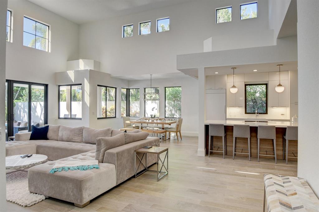 This contemporary 4 bedroom/3 bathroom home has been completely remodeled! The open floor plan is complete with impact glass, volume ceilings, quartz countertops, stainless steel appliances, beautiful porcelain tile, solid core doors, LED lighting throughout, Nest thermostats, great architecture, lots of closet space, new pool coping and tile, and a beautifully landscaped backyard. This home has it all! Roof was redone 2013.