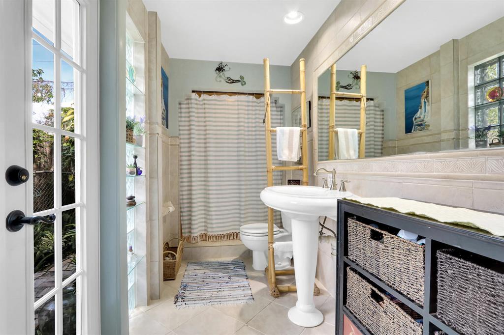 If you are looking for a unique, private sanctuary with artistic flair, look no further. This 3/2 home features a beautiful pool and separate hot tub, one-of-a-kind mosaic floors, and Dade County pine. The home is designed to connect you to the peace and beauty of the lush vegetation of the outdoors and features a spacious screened lanai to read, relax, and feel the coastal breezes. Explore the nature paths and second story roof terrace. Eco-features include a saltwater pool and solar hot water heater. Located in desirable Old Pompano and within walking distance to Pompano Beach Air Park, Kester Park, Jaycee Park, Pompano Beach Amphitheater, the Cultural Center and the new library. This gem won't last.
