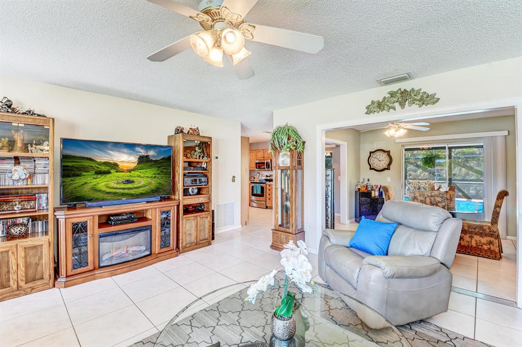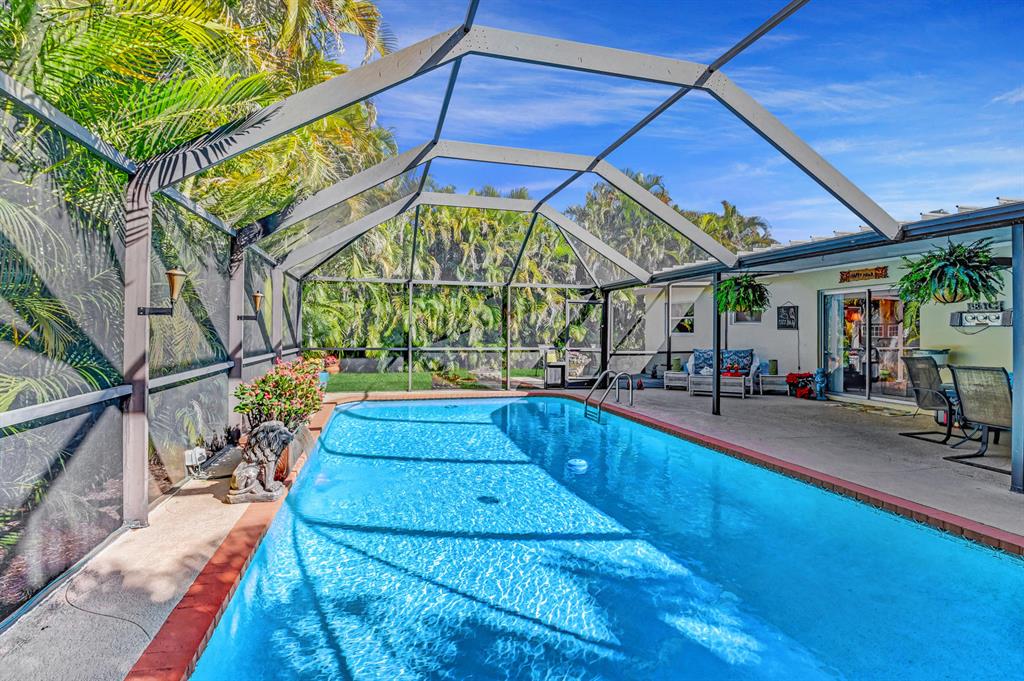 Wow!! Live the dream! 3 True bedrooms (currently wall is been opened and widened to make part of living area/easy fix back), 2 baths, 1 car garage/2 car wide driveway POOL home. This spacious & and open home is absolutely meticulous both inside & outside. Tile flooring in the living area. Updated kitchen Kenmore Stainless Appliances including French door refrigerator, microwave, dishwasher, electric range, pull out drawers, a pantry and eat in kitchen all overlooking the tropical oasis backyard! Screened enclosure over the pool, plenty of covered area, waterfall in the pool, green grassy area, Shed, open patio for tanning on lounge chairs, landscape lighting, Pool Pump is 2 years old. Save money on water bill w/auto sprinklers are on a well.Roof 2006, AC 2018, most windows are newer.