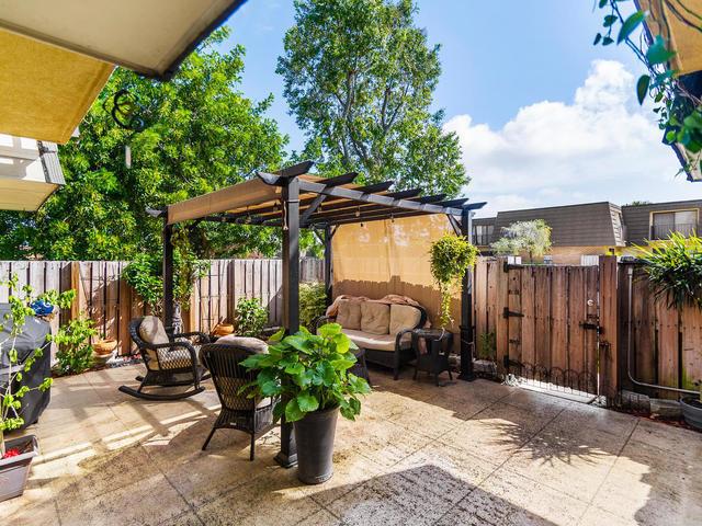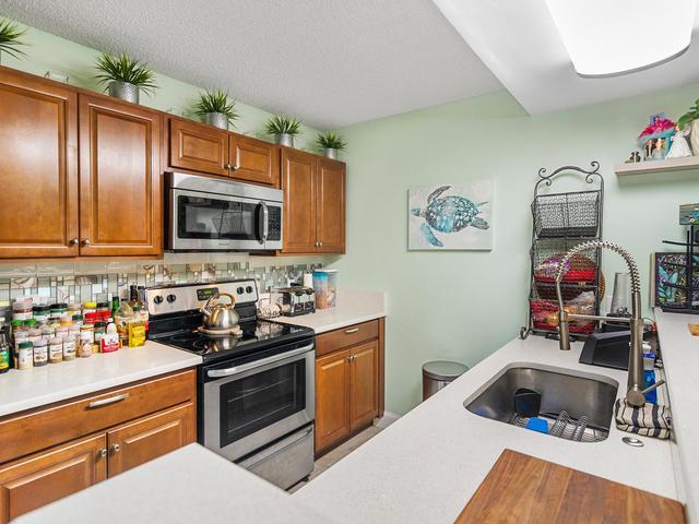 SELLER WILL CONTRIBUTE $3K TOWARDS BUYERS CLOSING COSTS. PROPERTY COMES WITH 1 YEAR HOME WARRANTY, HVAC ELECTRIC AND PLUMBING. Perfect quiet spot right next to the lake with lots of wildlife and fishing. Two parking spaces just a few steps outside the privately fenced-in patio. Tastefully landscaped with pergola that stays. ACCORDION HURRICANE SHUTTERS are installed throughout, leaving you with no worries in Hurricane Season. New white galaxy quartz counter tops in kitchen, stainless steel appliances. Beautiful travertine tile in both upstairs showers and bathroom floors/upstairs landing. Laminate floors in living room/dining area and both bedrooms. Washer and dryer in unit. 3 pools, tennis courts and playgrounds