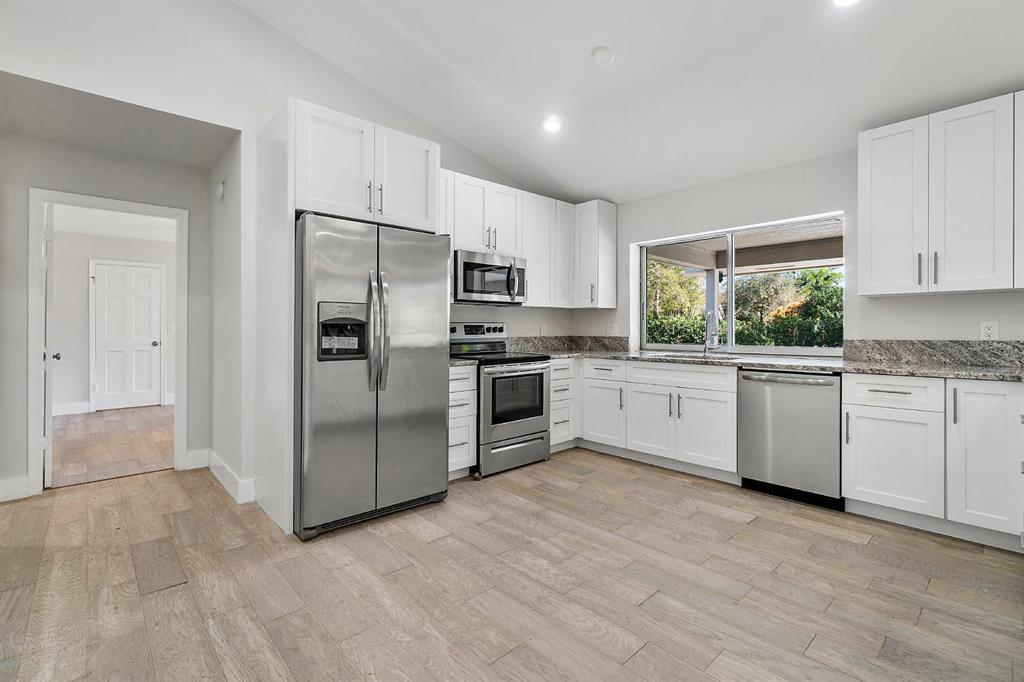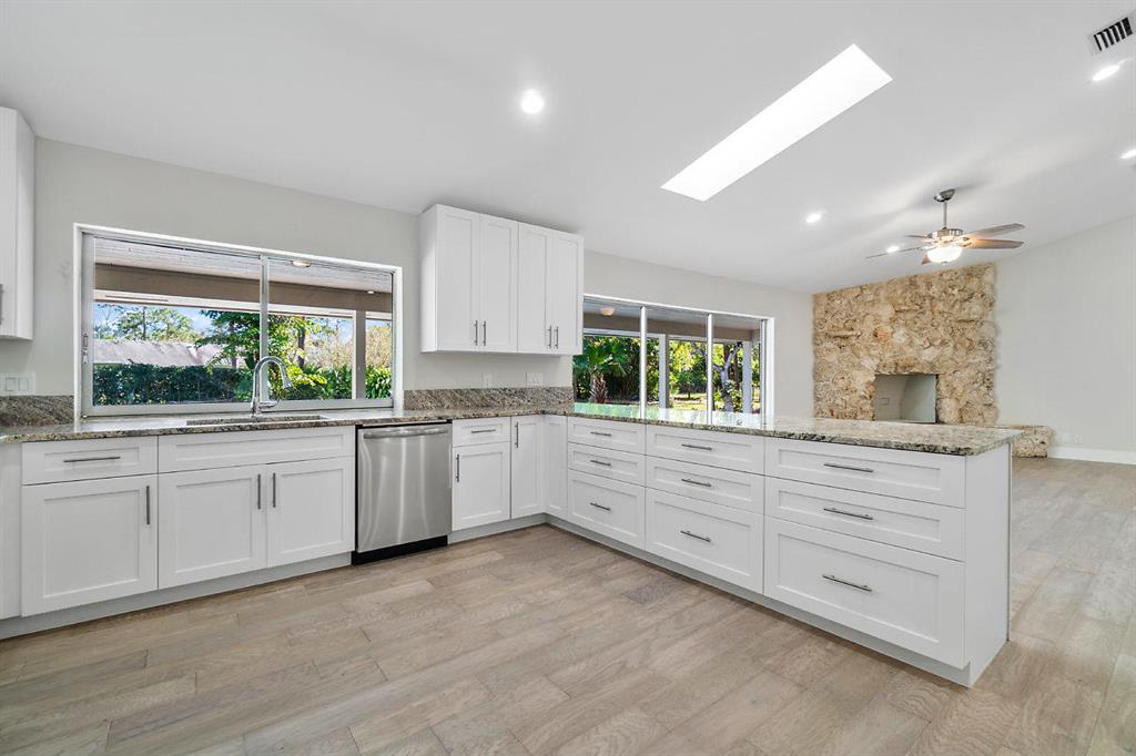 Masterfully remodeled Palm Beach Country Estates 4 Bedrooms 2 Baths 2 Car Garage Pool Home with an exceptionally long Concrete Driveway and Two NEW Gates situated on 1.15 ACRES. Light, Bright and Expansive this Single Family Residence has it's very own Pond to add to the beautiful tranquility of the Yard. Truly a Spectacular home which boasts 3,292 SF. Seller has not spared any Expenses in Remodeling. Beautiful Hand scraped Hardwood Floors throughout all living space & master bedroom. Extra Large Gourmet Kitchen with Newly installed 42'' Custom White Shaker Soft Close Kitchen Cabinets with beautiful Granite Countertops. Brand New Appliances, Fresh Coat of Paint throughout the Entire Interior & Exterior. Porcelain Tile in Both Bathrooms along with Custom Soft Close Vanities & Granite