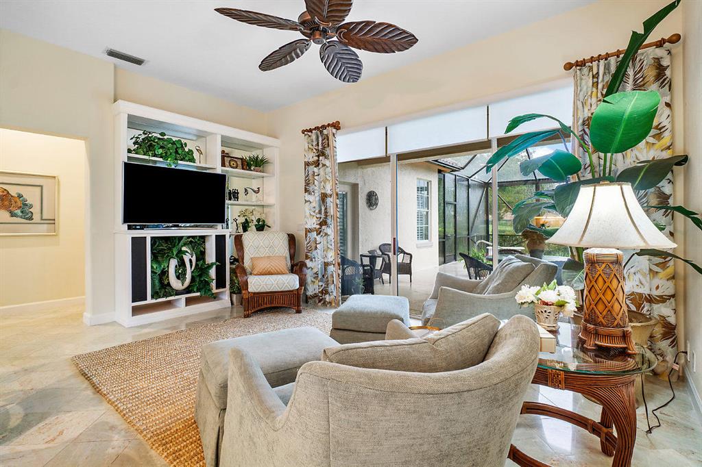 Check out the NEW 3D virtual tour of this home. Rarely available 2 story home with master bedroom AND guest suite AND den on the first floor! Upstairs offers a 2nd guest bedroom, full bath and loft. Super bright home w/ Southeast exposure overlooking golf course views of Heritage # 1 (no cart path). NEW GENERATOR! Kitchen has lovely white cabinetry and appliances, granite countertops, and pantry. Formal living room and dining room with built-in storage. Master bedroom w/ French doors to patio, guest bedroom with private bath, den with gorgeous built-in and engineered wood floors and an extra half bath ALL on the first floor! Huge screened patio with pool and spa. Super deep lot gives you one of the longest driveways in Osprey Creek and a large fenced yard. Enjoy sitting by your (See More)