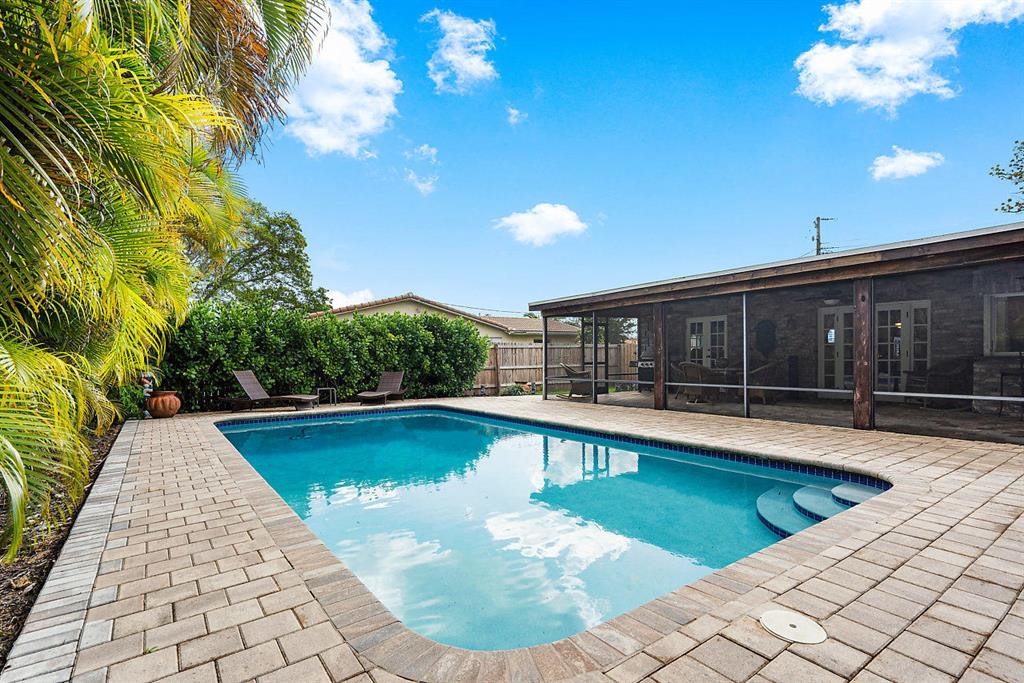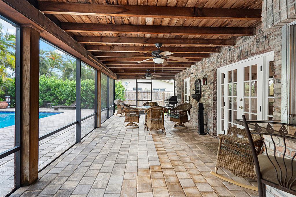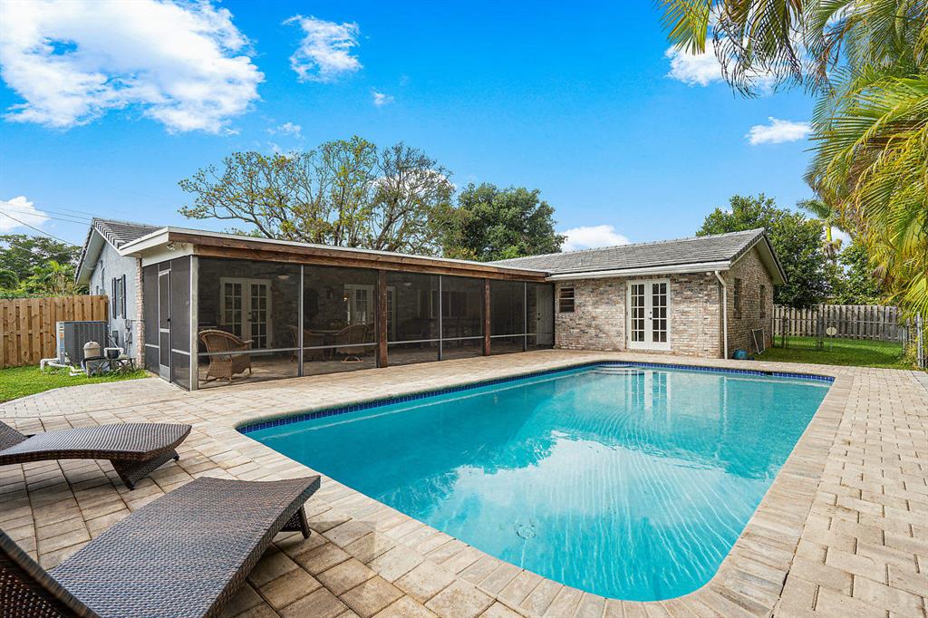 Forget Zero lot lined property. This street is early Florida with big lots and room to roam. NEW ROOF! Side entrance 2 car garage. With over 1/4 acre of land, this fenced yard shares an updated and improved home with an ample pool and private pavered patio. The formal dinning room, family room and the master bedroom all open to the peaceful enclosed patio which is generous in size and has the added charm of wood ceilings. This wonderful 4 bedroom 2 bath family friendly property has nice updates to the well appointed kitchen and tastefully improved baths. New AC. No Association! Don't let it be the one that got away.