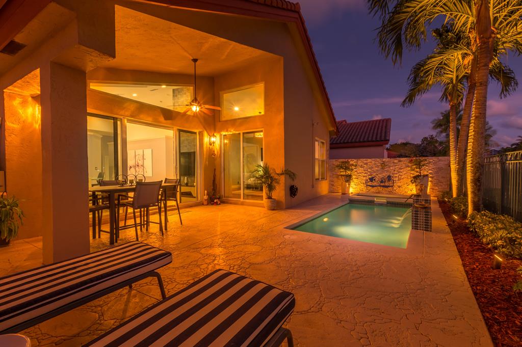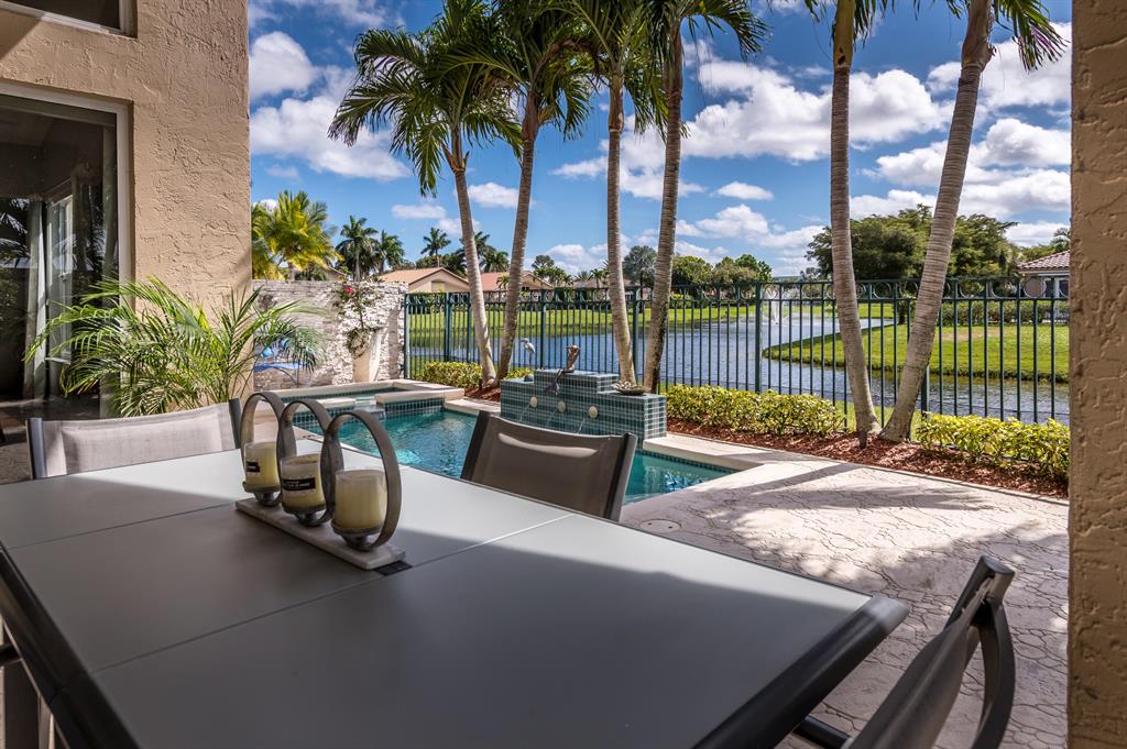 BEAUTIFUL AND SOUGHT AFTER FABULOUS SANTA BARBARA. The minute you walk in this home you will be awhed. This home boasts of fresh natural light, volume ceilings and upgraded with such a tastful, modern and european flair. Shinny white rectified porclean tile in the living areas and engineered wood in the bedrooms. A beautiful custom design kitchen with Bosch appliances, that opens to the living space viewing the sun lite pool and water views with fountain. Hunter Douglas shades, BRAND NEW AC, newer water heater from 2014, roof 2012 and IMPACT GLASS INCLUDING FRONT DESIGNER DOORS AND GARAGE DOOR. Enjoy the discounts on Home Owners Insurance. Clubhouse, tennis & fitness center in gated community. Beautiful pool & spa overlooking tranquil lake. The home is