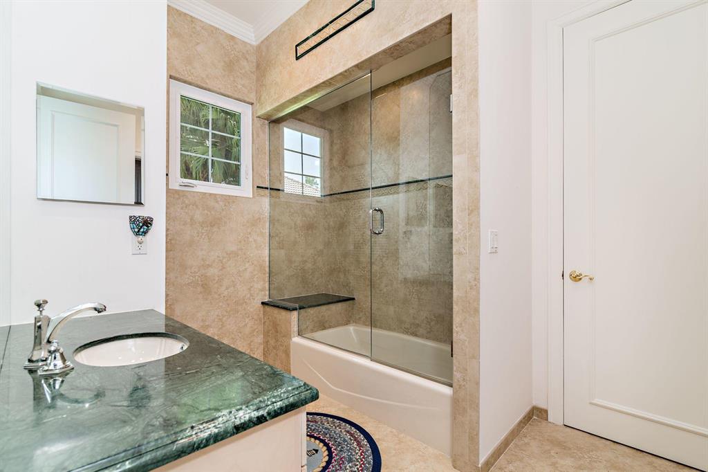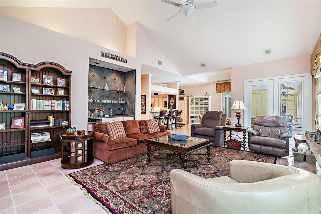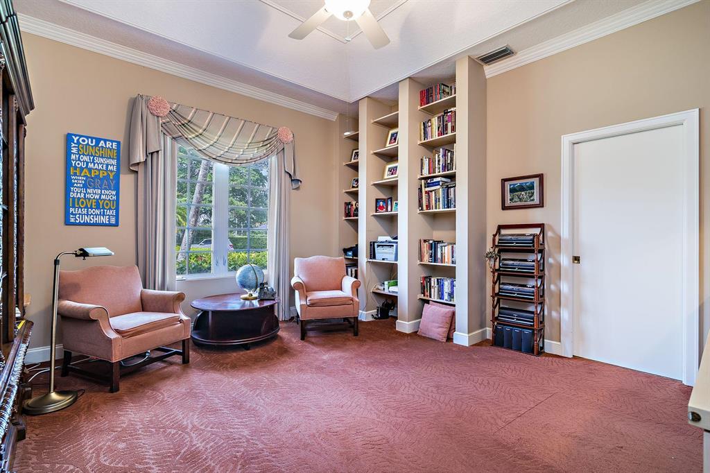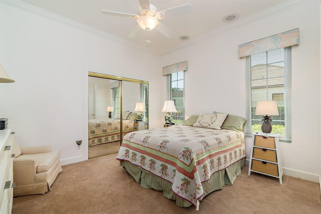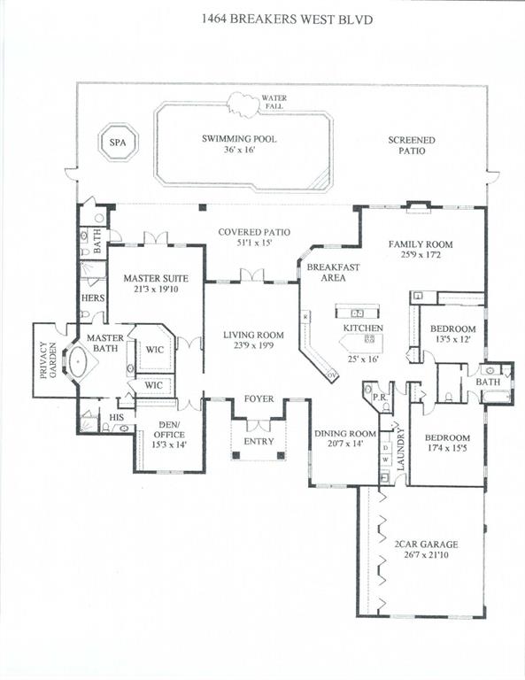 Beautiful Bermuda style architecture in the estates of Breakers West. Expansive green golf course views plus privacy from all major rooms. This 4 bedroom, 3 full and 2 half baths, 2.5 car garage was refurbished in 2009. A flowing floor plan with generous room sizes and custom wood coffered ceilings enhance the dramatic living room with warm maple flooring. Gourmet kitchen with granite counters, stainless appliances and Sub Zero opens onto a bay windowed breakfast room and large great room with wood burning fireplace & french doors. A comfortable 52 x 15 arched covered loggia overlooks extra wide pool w/ spa and waterfall and natural form stone pavers. Ideal 5 star country club living at its finest with Breakers West and Mayacoo Lakes Country Club offering non mandatory memberships.