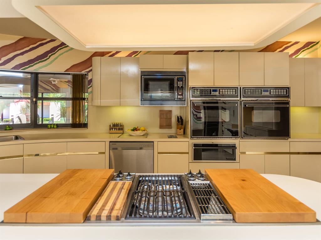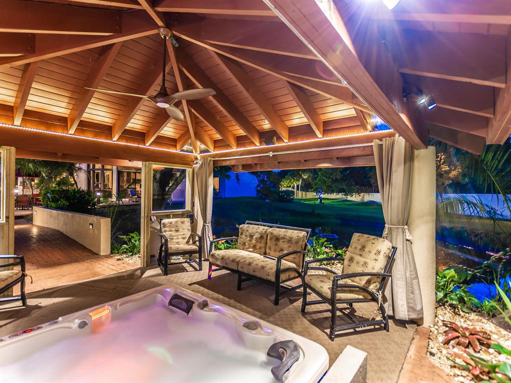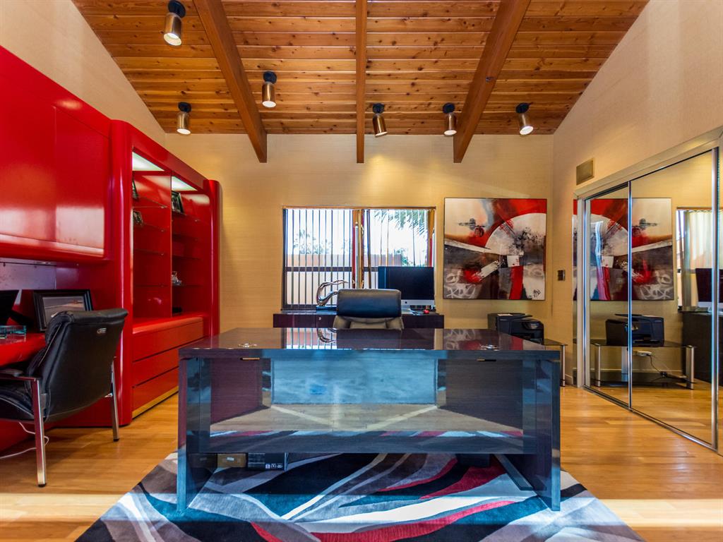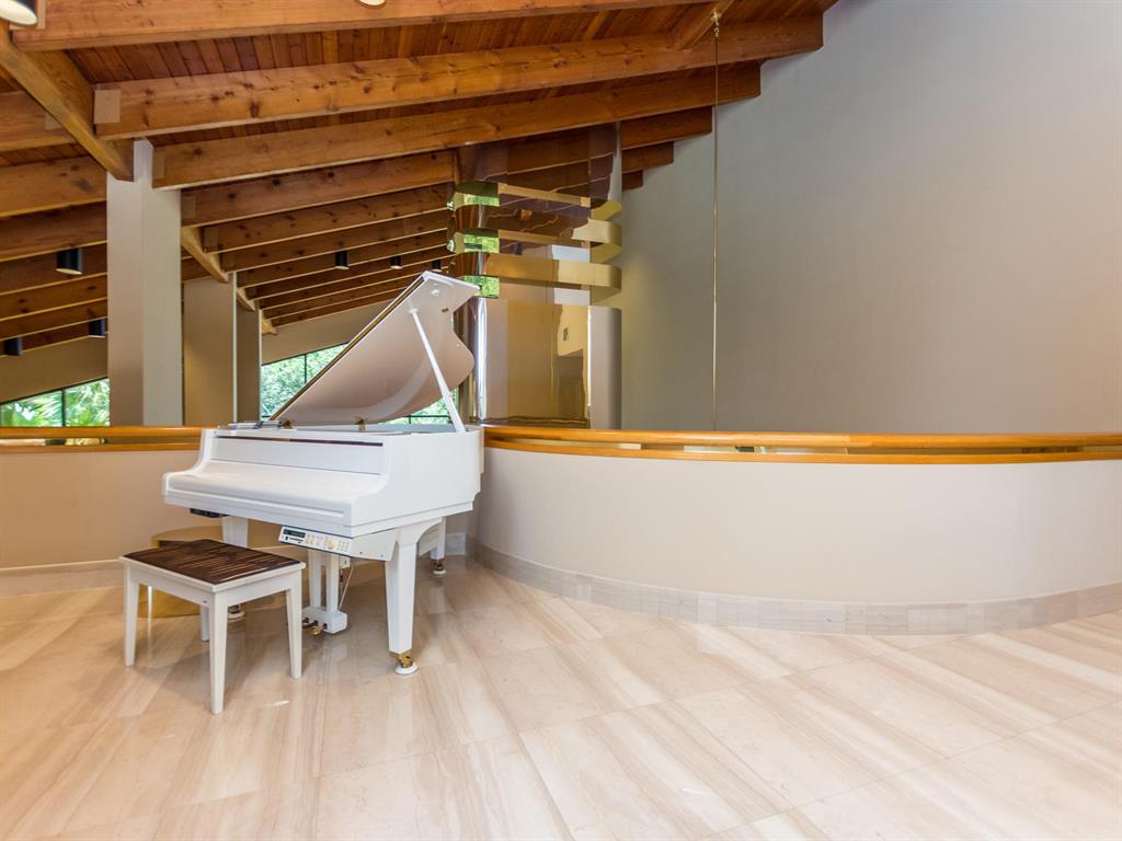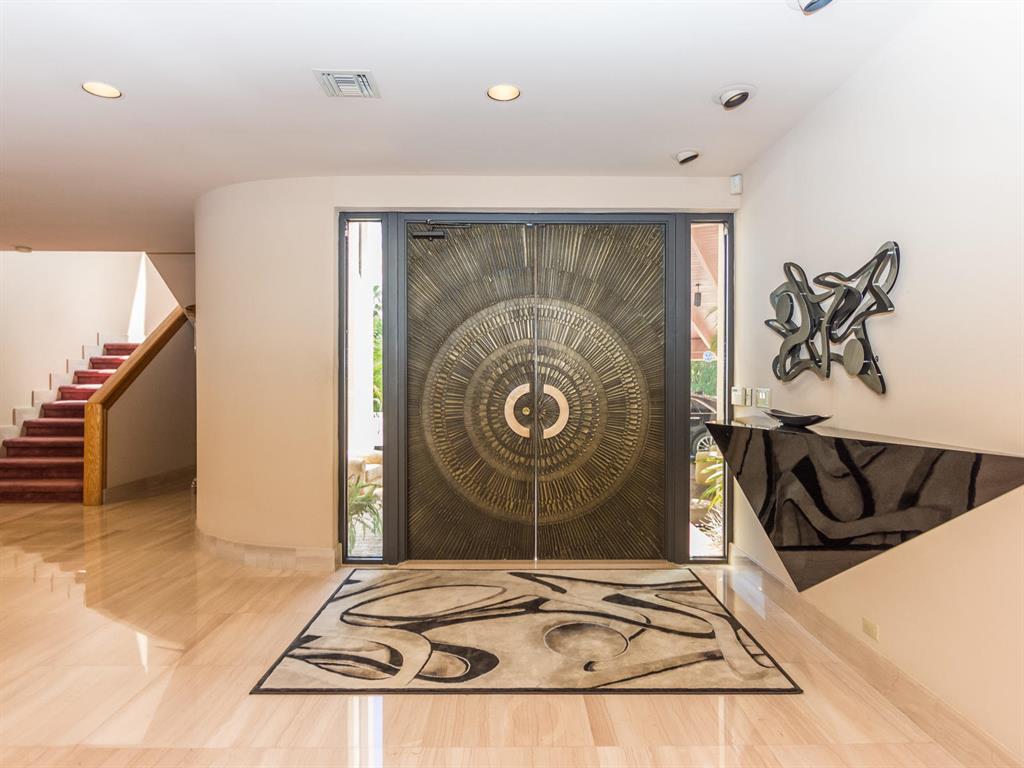 This one of a kind Architectural Masterpiece- 5 bedroom/5.5bathroom contemporary and professionally designed home and sits on a 2.5 acre estate with over 400 feet of wall, plus fence with a secured gated entry on a private street. Extra large master suite with 25 ft ceilings, has a large master bath 26'x20' with whirlpool tub and steam room and 2 offices. The 40 ft ceilings in living room and Italian marble floors, custom fireplace which looks like a piece of art soaring to 40'. Gourmet kitchen. Oversized heated pool, outdoor kitchen/bar , 8 person hot tub gazebo, 2 stocked ponds, lighted tennis and basketball court, outdoor bar, 8'x20' outdoor movie theater, architectural garden, fire pit. You feel like you are at a 5-star resort. No HOA, 80 KW Generator.
