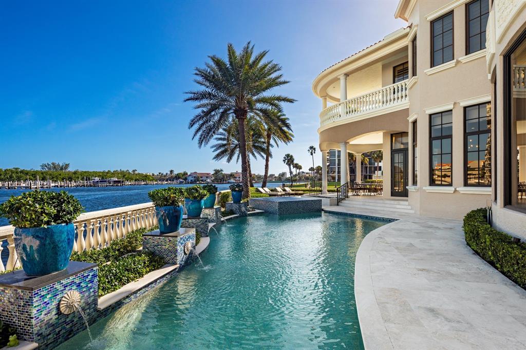 A rarely available Boca Raton dream estate located on an oversized waterfront point lot, abutting the intracoastal and access canal, offering both South and East direct water views and access. This Tuscan-styled estate was built in 2002 and provides 233 feet of water frontage, dockage for up to 75' yacht, almost 9,000 square feet of living space, 6 bedrooms, 8.5 bathrooms, 4 garages, elevator, home theatre, home gym/sitting room overlooking the waterway, pool and endless luxury. The professional landscaping greets you as you approach this extraordinary home. Enter and be impressed by the grand staircase with stunning wrought iron railings and an elegant statement chandelier. The luxury architectural details throughout the estate including...