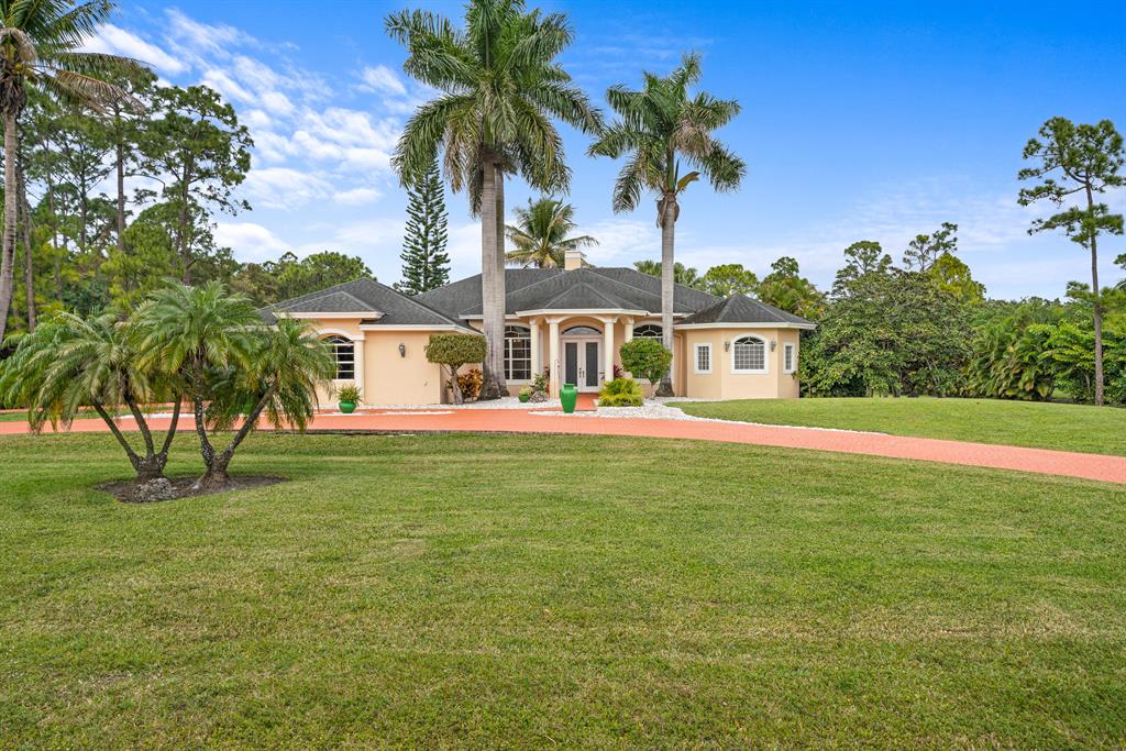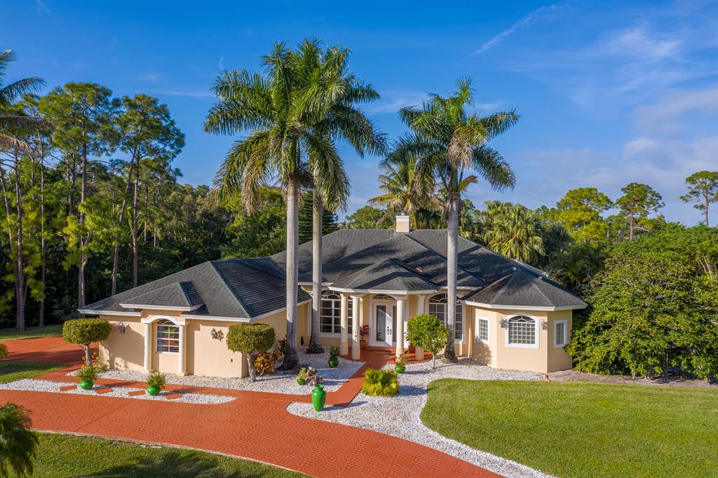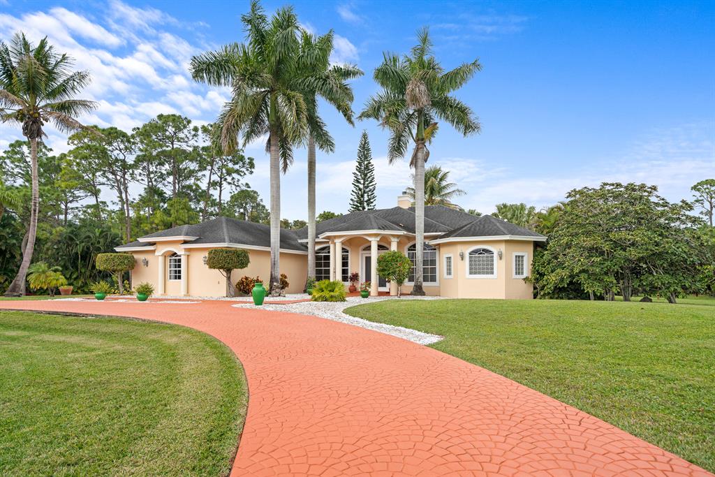 Welcome Home to one of the best estates in the area, where you'll enjoy a peaceful & pristine residence and grounds. Live in Pure Paradise. This estate is in a class by itself with all it has to offer. Situated just off of desirable Coconut Blvd on a paved road. 1 1/4 Acres featuring a perfectly manicured lawn, with beautiful mature Palm Trees, an elegant circular driveway with a European starbust design pattern leading to your 3 car garage as well as to your covered grand entrance. Once inside you'll take in the magnificent pool and lush tropical garden views and the meticulously kept interior. Split floor plan boasts the Master Quarters on one side with tray ceilings, an extraordinary master bathroom, your own private French Doors leading to a fabulous screened in pool & hot tub spa,
