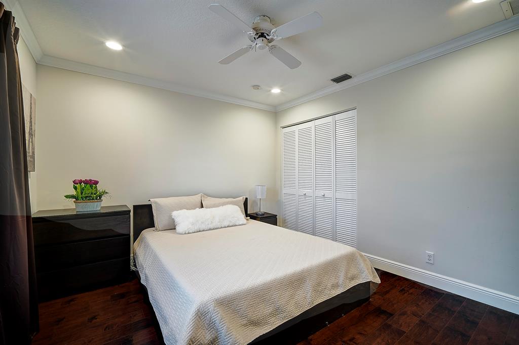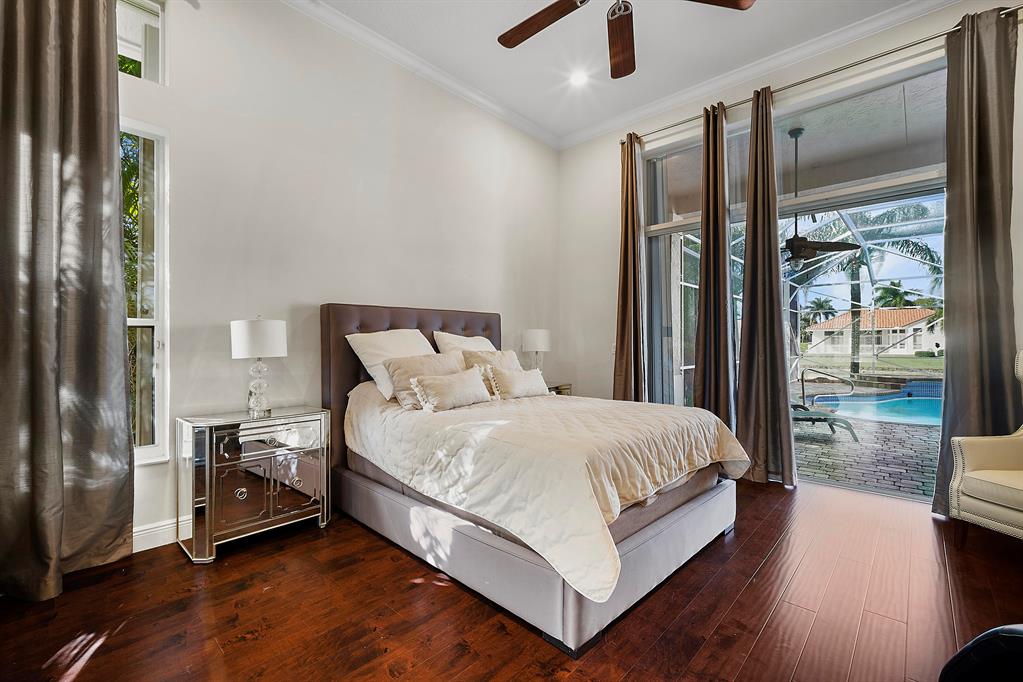 Spectacular Grand Cayman V model w/ 5 bedrooms, 3 full baths, and a pool on a gorgeous lake lot in highly desirable Boca Isles North. This fabulous home has an open 3-way-split floor plan and lots of bells and whistles. Roof is 2010, full hurricane protection (accordion shutters throughout), updated kitchen with 42'' cabinets, granite countertops, and top-of-the-line stainless steel appliances. Gorgeous porcelain tile laid on a diagonal in living area and engineered hardwood in all the bedrooms. Additional upgrades include two newer a/c's, new hot water heater, new central vac, newly diamond brited pool, crown molding, custom closet organizers, neutral paint colors, beautiful fixtures and draperies, and screened in patio with a long lake view. Fabulous house for entertaining!