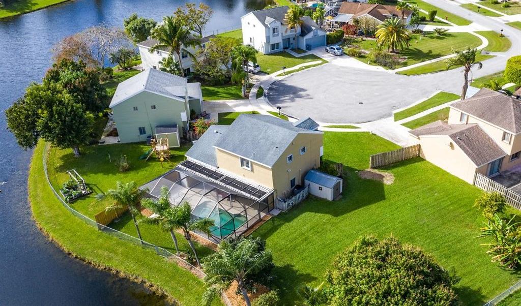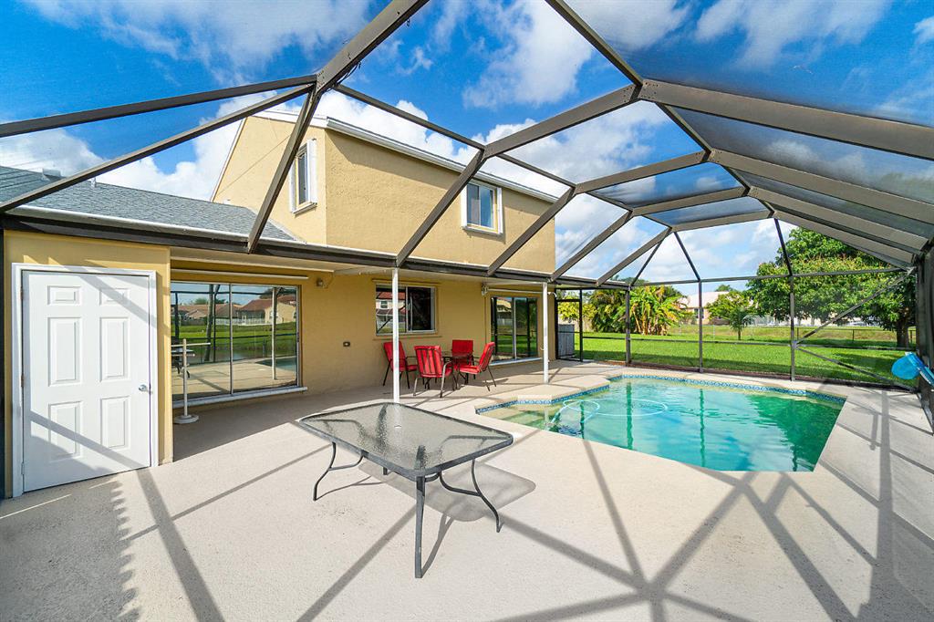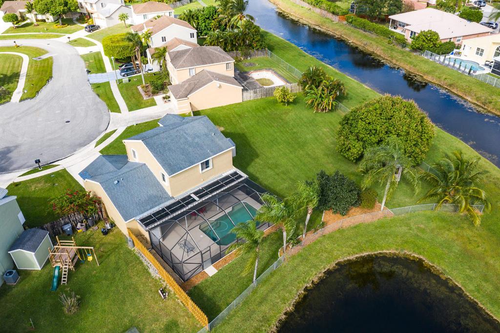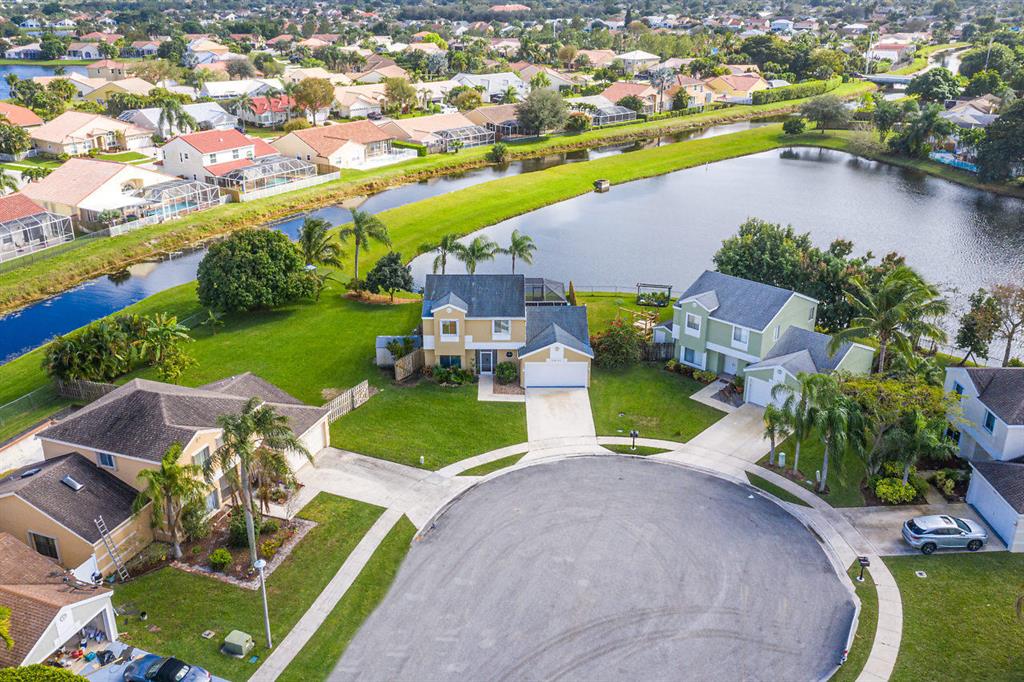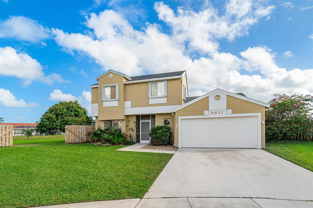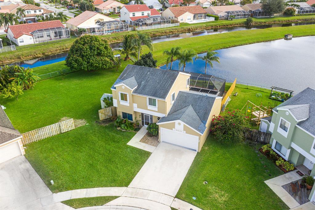 Don't wait to see this beautiful two story home on a HUGE lot nestled in a quiet West Boca neighborhood at the end of a cul-de-sac. Recent updates to this three bedroom, 2 1/2 bath, 2 car garage home include popcorn removal from the ceilings, new wood laminate flooring throughout and the interior is freshly painted. All of the bathrooms have been updated. A beautiful kitchen with stainless steel appliances and granite counter tops is open to a large area that can be used as either a sitting room or breakfast area. Living and dining areas in the great room are very spacious. All three bedrooms are located on the upper level. The master bedroom has a walk in closet and en suite bathroom.