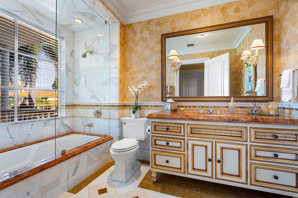 This magnificent, three-story European-inspired villa in Boca Raton's The Sanctuary underwent a complete ground-up renovation in 2011 and impresses from first look. With over 13,700 square feet of refined living space that includes four bedrooms, six and a half baths, complete staff quarters and an elevator, luxurious details abound. From the gorgeous flooring with inlaid stone, marble and granite to ceiling details that call to mind the most luxurious, world-renowned resorts, no detail has been overlooked. All of this and much more is set on over 210 feet of prime deep water with fully equipped yacht dock.A bar, media room, large office/ library, loft and maid's suite add to the impressive list of amenities in this well-appointed home.