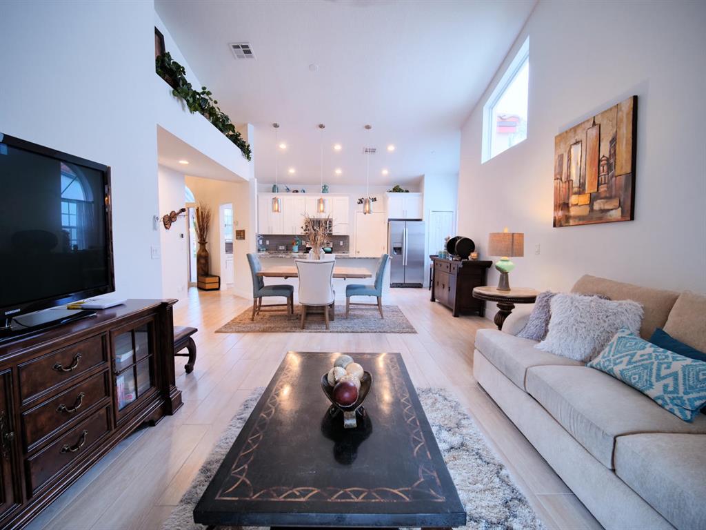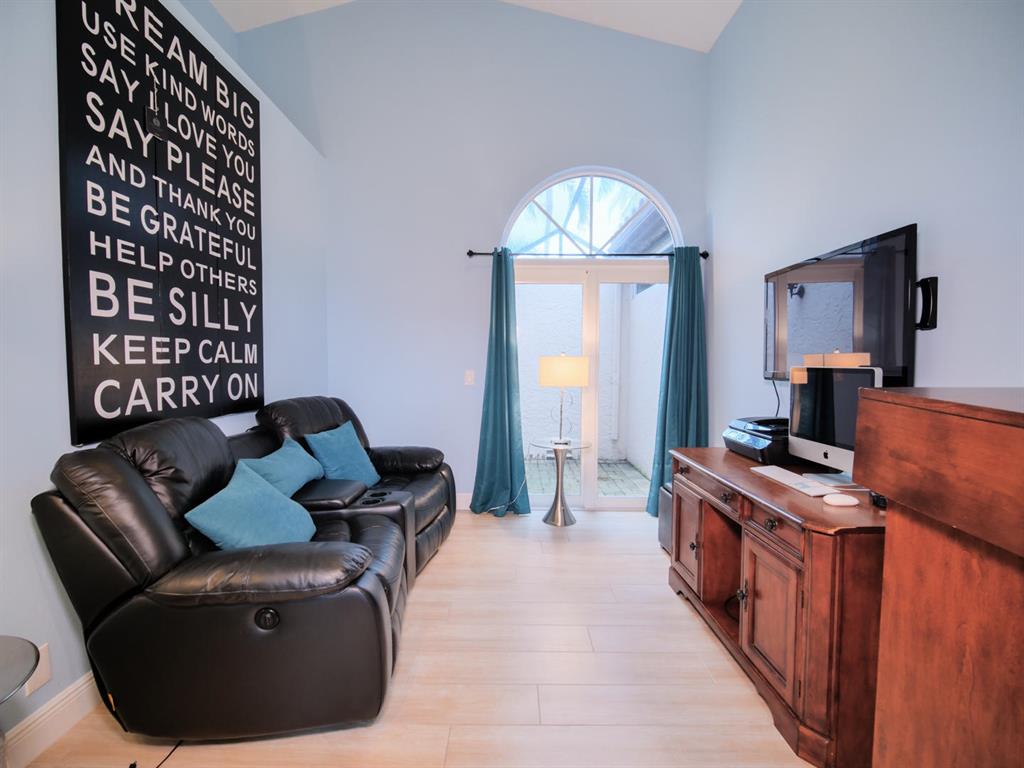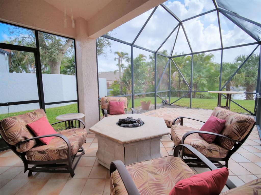 Fall in love with this remodeled waterfront property in prestigious River Bridge community. This 2 bedroom + den (possibly 3rd bedroom) home has it all! The home has been completely remodeled from top to bottom including newer water heater, impact windows and newer AC. Kitchen features white cabinets, ss appliances, granite countertops, modern backsplash and lightning. The split bedroom plan boasts a master retreat with walk-in closet and remodeled en suite bath with dual sinks and step in shower. High-end wood-look tile throughout and a completely open concept kitchen, living, dining area make this the perfect home for both entertaining and everyday living. Relax on your screened patio overlooking the lake and enjoy beautiful Florida sunsets.